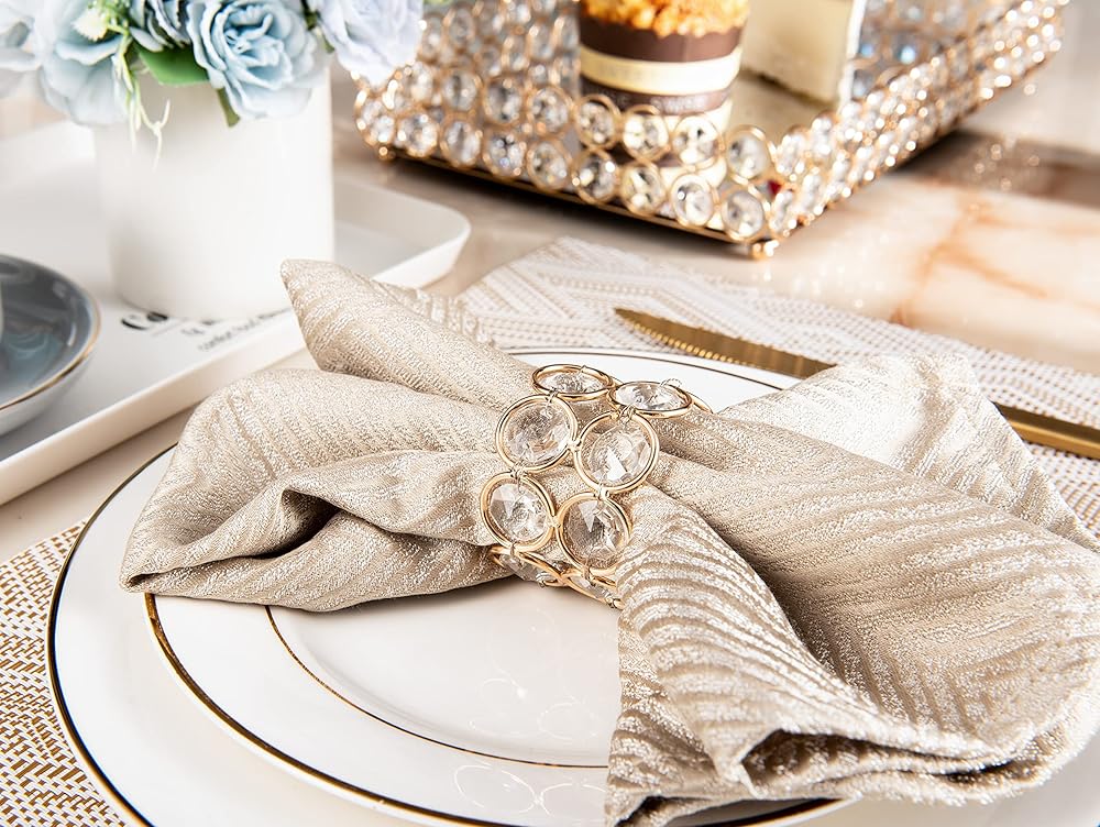 - Napkin Rings Material: Plated Metal with Double-deck Crystal Beads