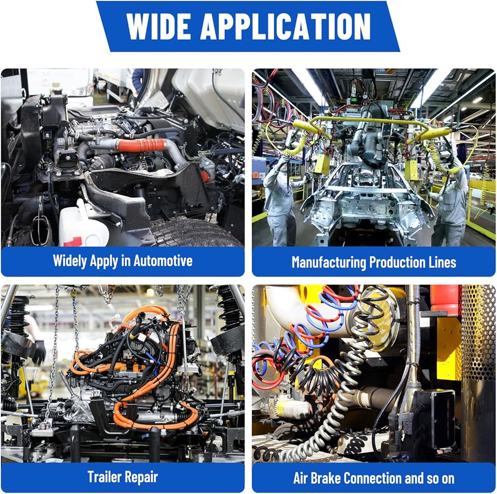 • الاستخدام على نطاق واسع: تركيبات التوصيل السريع مناسبة لأنابيب أو خراطيم PU/PA/PE/PVC، ويتم تطبيقها على نطاق واسع في إصلاحات السيارات أو وصلات فرامل الهواء أو ورش العمل الصناعية.