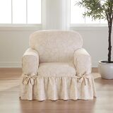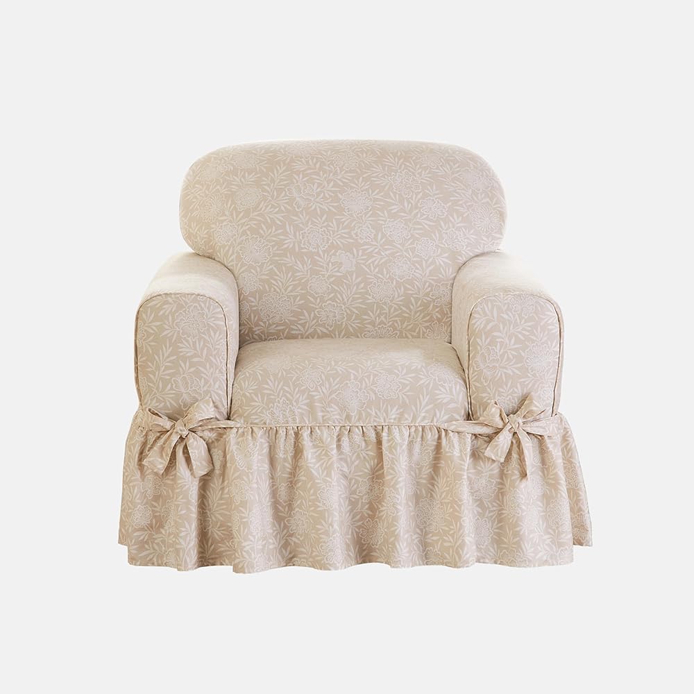 Give your sofa a fresh upgrade with the SureFit Essential Twill Ruffled Sofa Cover. Crafted for both protection and style, this slipcover has a special finish that resists water-based stains and offers a simple yet effective solution to keep your furniture looking new and charming. Designed to fit most sofas with ease, measuring 74 to 90 inches wide when measured across furniture outside arm to arm, this slipcover adds a touch of casual elegance to your seating. Crafted from high-quality 100% Cotton Printed Twill, our couch cover offers a relaxed fit for a slightly loose and casual look. Elevate the aesthetic of your couch with the delightful, ruffled skirt detail. It brings a touch of sophistication to your seating arrangement, making it an ideal choice for various occasions. Bid farewell to constantly adjusting your slipcover. The seat elastic tucks seamlessly under your seat cushions, ensuring a secure fit. Plus, four sets of corner ties provide adjustability, allowing you to achieve a more tailored profile effortlessly. With its one piece design, installing and cleaning your slipcover has never been easier. Made from 100% cotton material, this couch cover not only exudes quality but is also machine washable, simplifying maintenance and care. Try mixing and matching with our collection of Essential Twill Slipcovers.