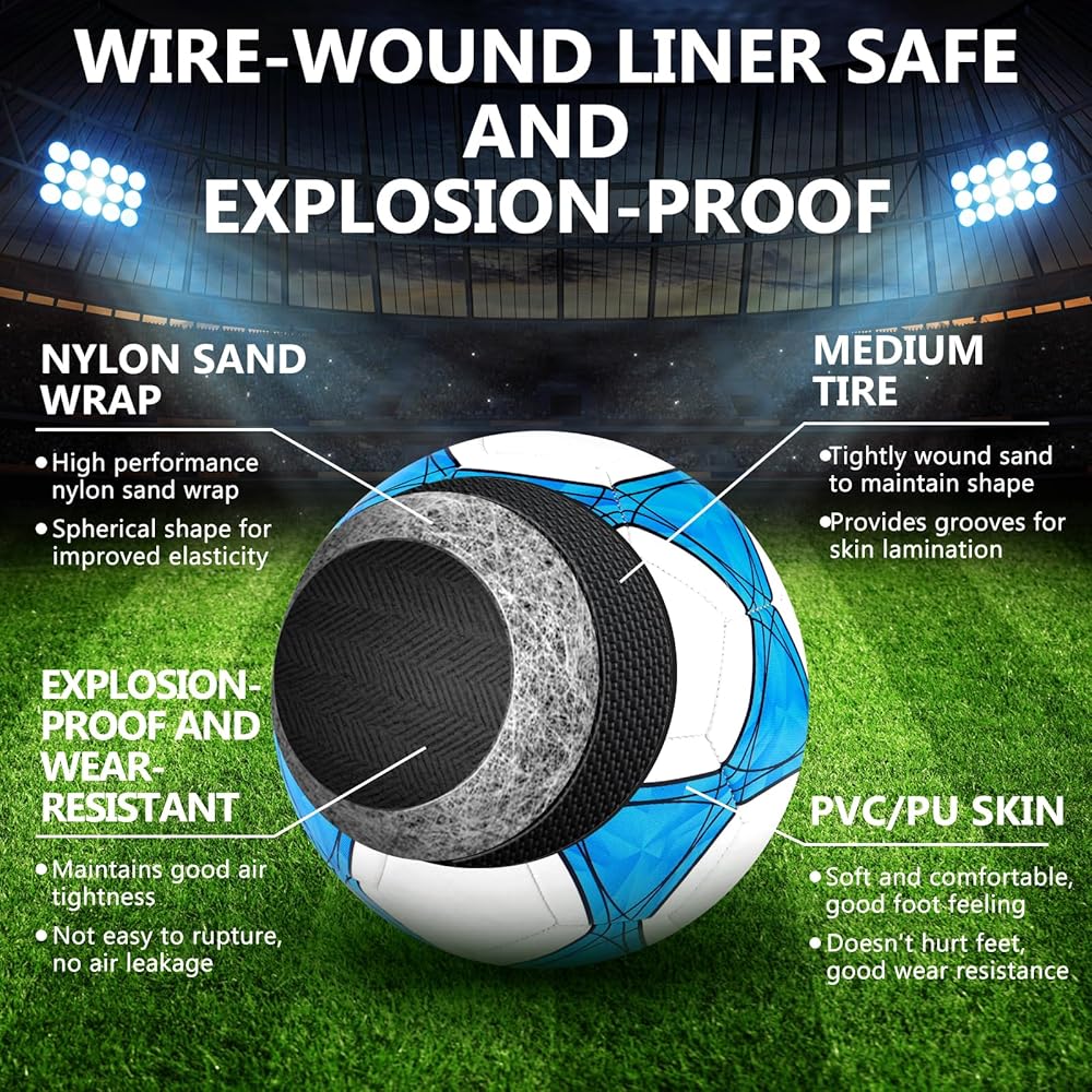 ⚽سطح ناعم من البولي يوريثان السميك، شعور جيد بالنسيج المحكم من الداخل مضاد للانفجار، مناسب للأراضي العشبية في الأماكن المغلقة أو الهواء الطلق. تتطلب الكرة نفخ الهواء من وقت لآخر لأنها تحتوي على تسرب طبيعي، نوصي بنفخ الكرة قبل الركل.