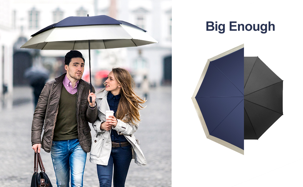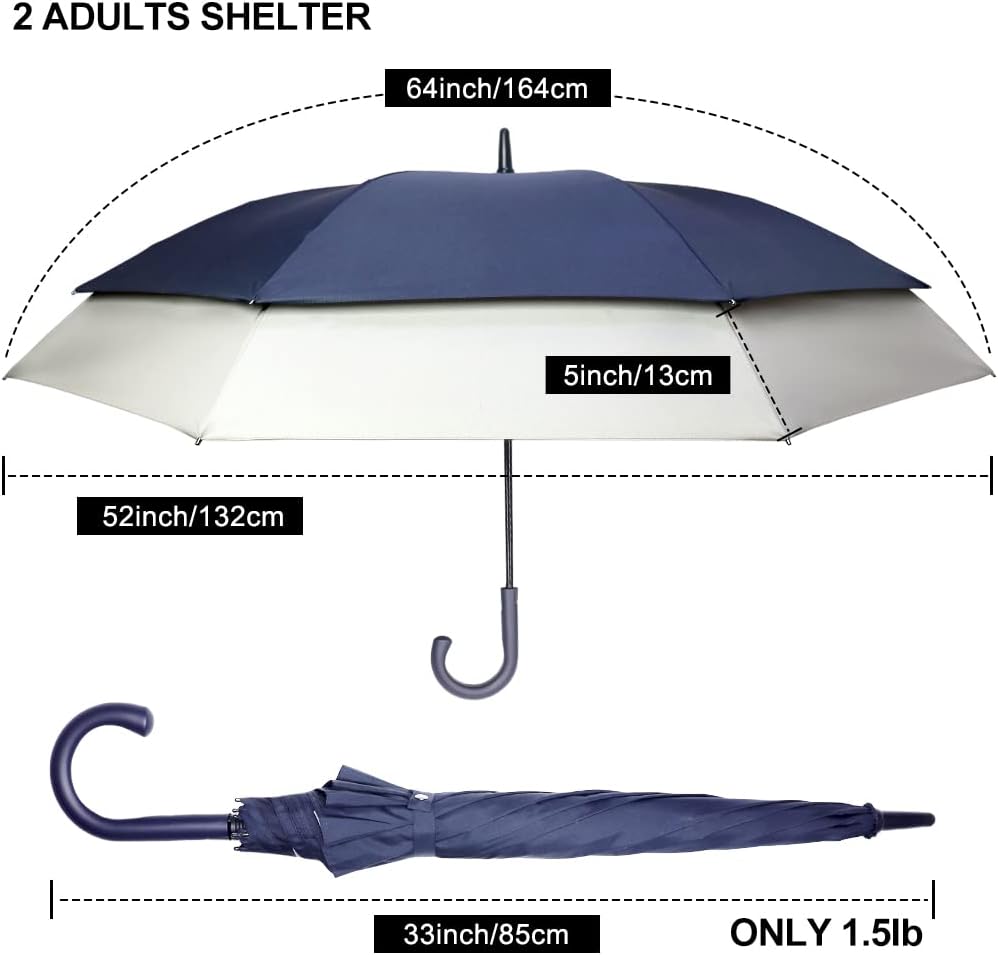 مظلة كبيرة ومتعددة الوظائف: مع غطاء كبير جدًا مقاس 62/64 بوصة، توفر المظلة الخاصة بنا تغطية كاملة لشخصين إلى 3 أشخاص، مثالية للجولف أو الرياضة أو العمل أو السفر أو الاستخدام اليومي. ألوان متعددة للاختيارات. يأتي مع كم مظلة واحد لسهولة التخزين.
