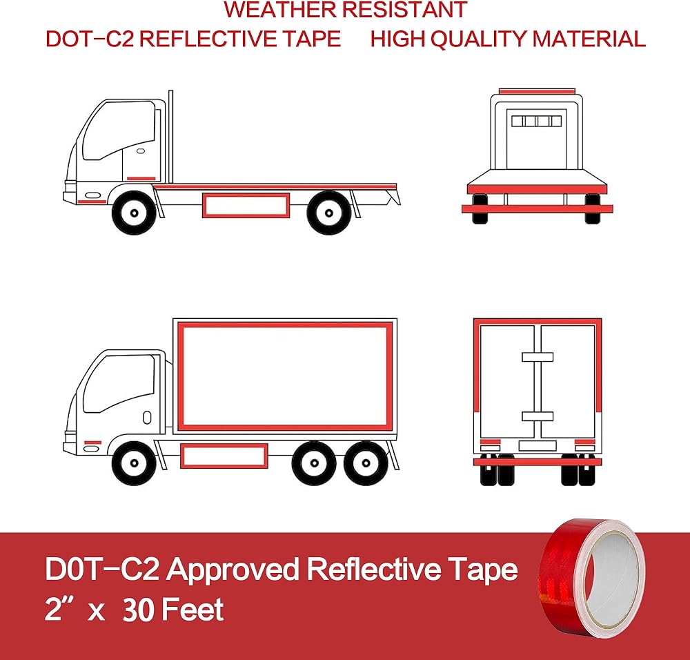 تمت الموافقة على DOT-C2 ويجب أن يكون لديك. الشريط العاكس عبارة عن شريط مقاوم للطقس القاسي ومقاوم للمذيبات، وهو مصمم للاستخدام الخارجي على جوانب ومؤخرة الشاحنات والمقطورات والسيارات ومركبات الطوارئ لتعزيز السلامة على الطريق من خلال تحسين رؤيتها. تتوافق الأشرطة العاكسة LEORAY DOT مع اللوائح الصادرة عن وزارة النقل (DOT) بشأن المواد الواضحة. يتضمن الشريط العاكس الخاص بنا لفة واحدة مقاس 2 × 30 قدم.