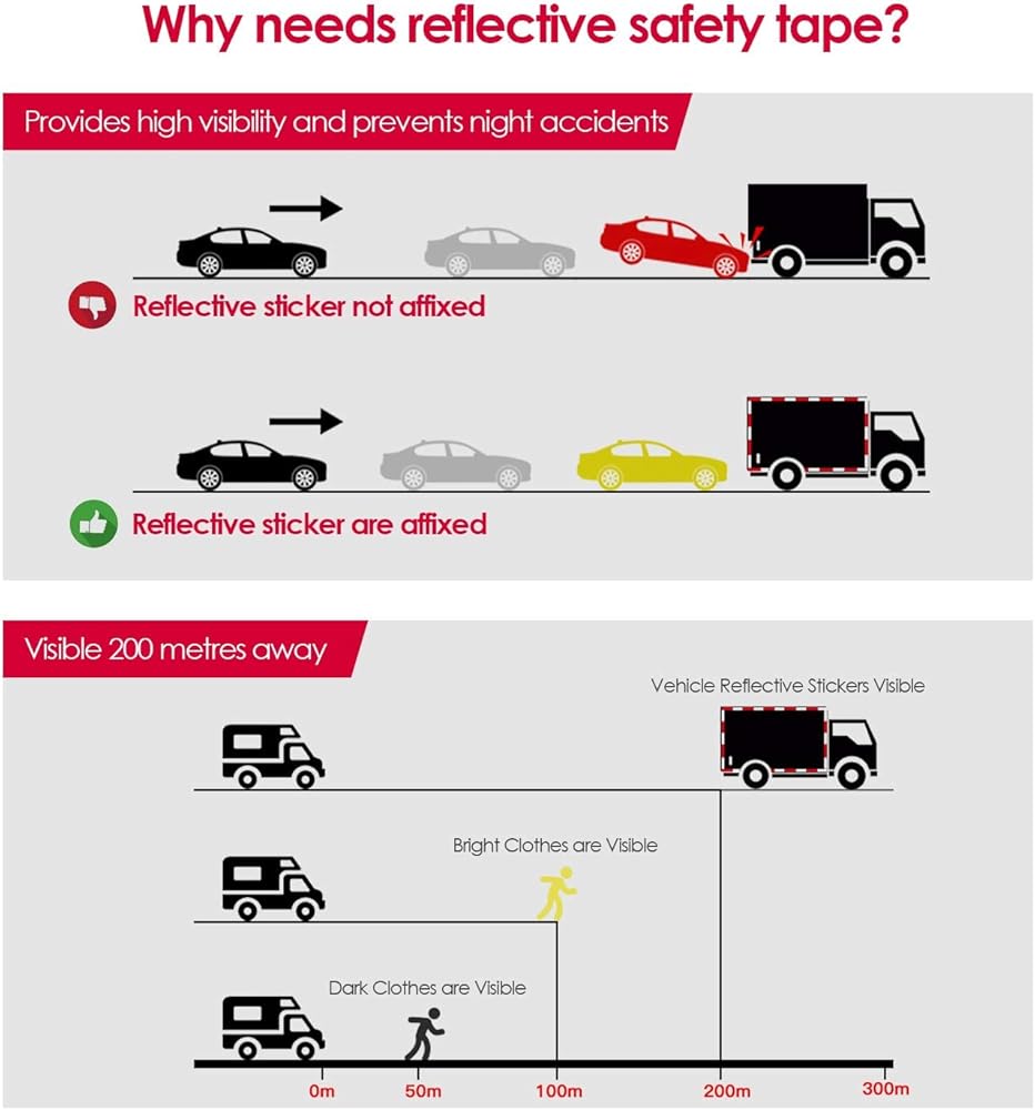 رؤية عالية وانعكاس أفضل. يتميز الشريط العاكس عالي الوضوح الخاص بنا بنمط ماسي واضح للغاية وزاوية عاكسة حادة لتحسين الرؤية، مما يوفر قياس أمان إضافي أثناء القيادة ليلاً أو تحت المطر.