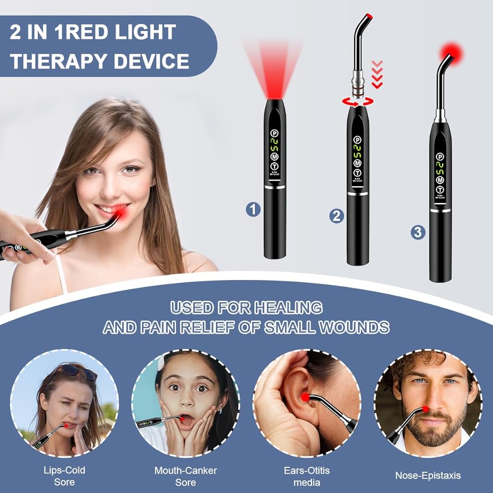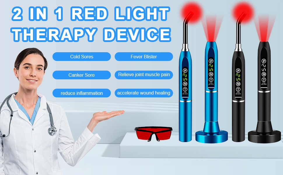 الضوء الأحمر، القرحة الباردة، عصا الضوء الأحمر، علاج قرحة الهربس، علاج الشفاه، جهاز تخفيف البثور للحمى، لعضلات الأنف والأذن والفم، جهاز الضوء الأحمر متعدد الوظائف 2 في 1 للجسم مع النظارات