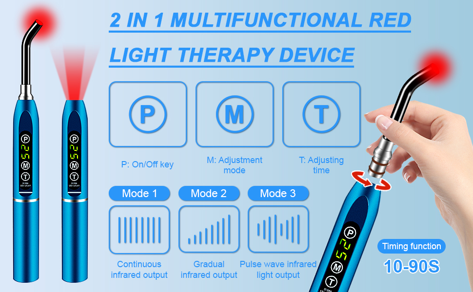 【تصميم محمول وسهل الاستخدام】يتميز جهاز الضوء الأحمر المحمول لدينا بتصميم خفيف الوزن ومحمول مع قاعدة وبطارية قابلة لإعادة الشحن، مما يوفر ما يصل إلى أسبوع واحد من الاستخدام بشحنة واحدة. يمكننا ضبط الوقت الذي تستخدمه وفقًا لحالتك المحددة. جهاز الضوء الأحمر الخاص بقرحة البرد لديه 9 مرات للاختيار من بينها: 10S، 20S، 30S .......90S، مما يمنع تعب الذراع أثناء الاستخدام لفترة طويلة.