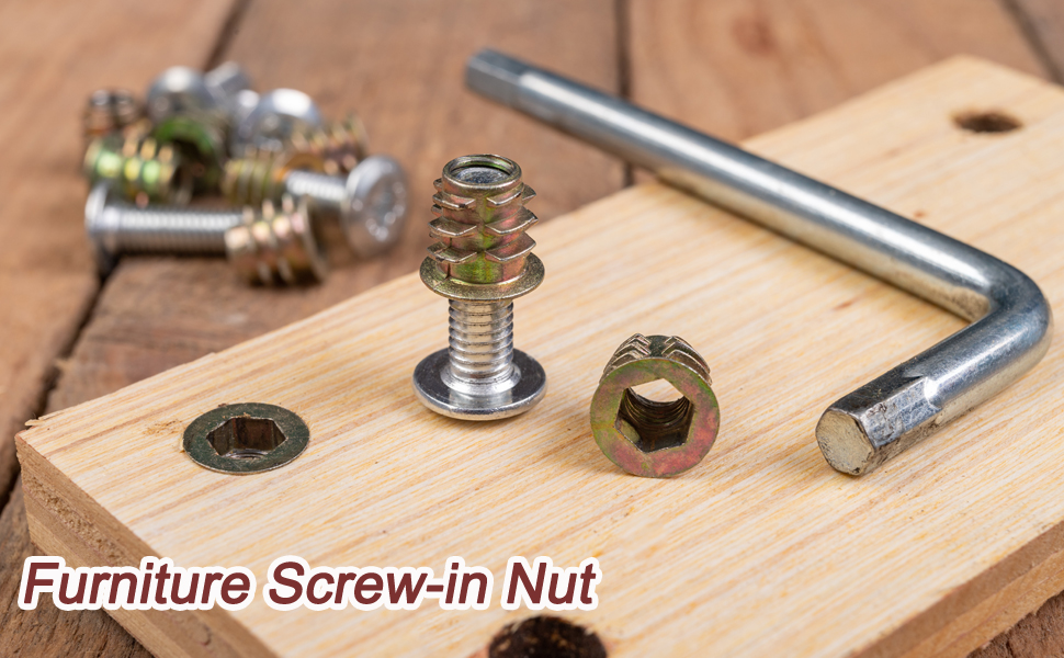التصميم: تصميم شبه منحرف للرأس السداسي الداخلي، يتم الضغط عليه بالتساوي على الأسنان الداخلية والخارجية، والهيكل أكثر استقرارًا. يتم تثبيت هذا النوع بدون شفة داخل الجسم الخشبي.