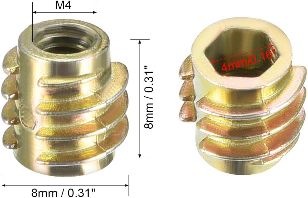 حجم الخيط الداخلي: M4؛ القطر الخارجي للجوز: 8 مم/0.31 بوصة؛ الطول: 8 مم/0.31 بوصة؛ حجم المثقاب المطبق: 6 مم/0.24 بوصة