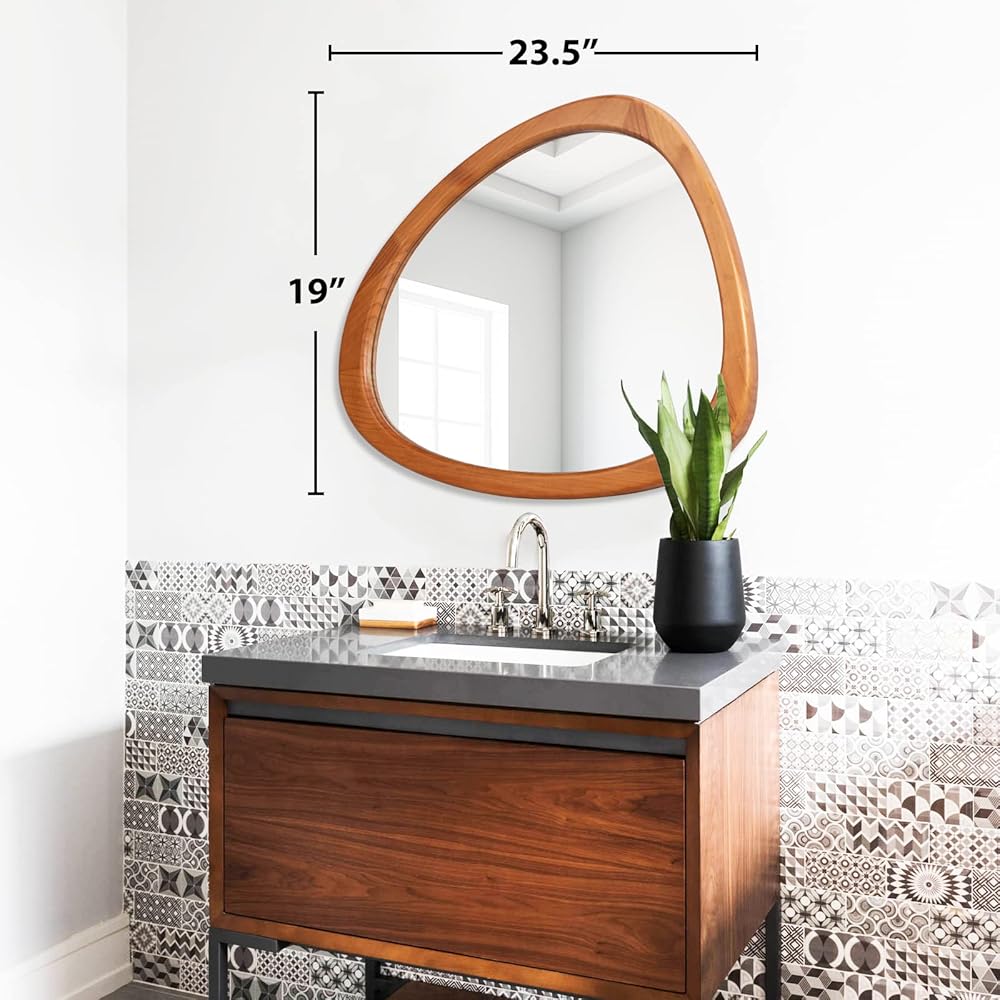 HOMECOOKIN Irregular Mirror Wall Decor, Wood Wall Mirrors Decorative for Living Room, Bedroom, Bathroom, Entryway, Wall Mounted Aesthetic Mirrors Large Size, 23.5" H x 19" W