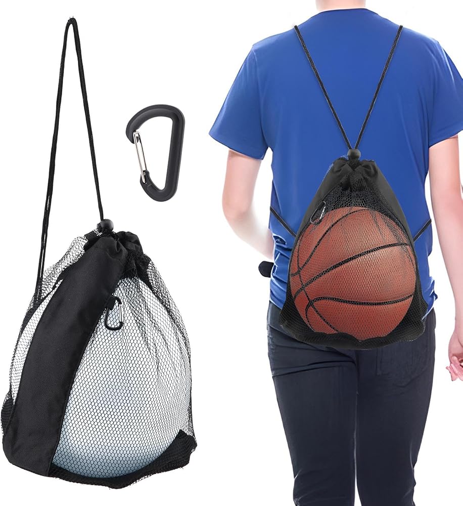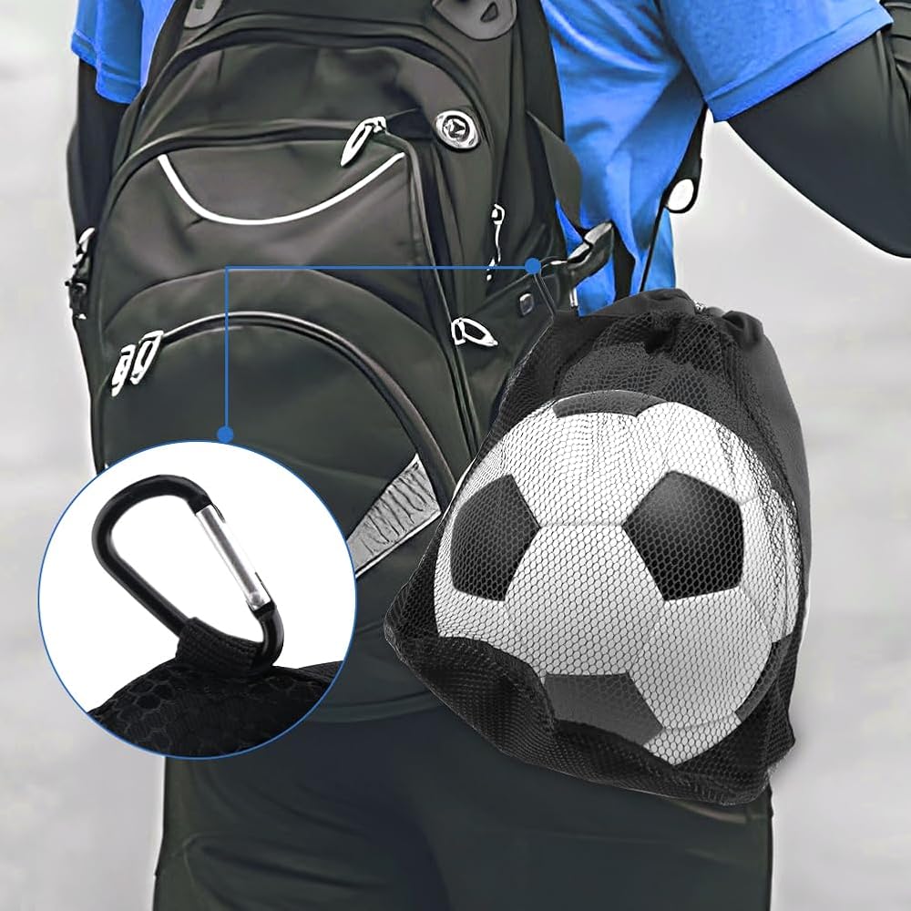 【HANGING CARABINER】You will receive 1pc ball bag with 2pcs carabiner for easy hanging on a backpack or sports bag. Carabiners come into play when you don't want to carry the ball bag on your shoulders.