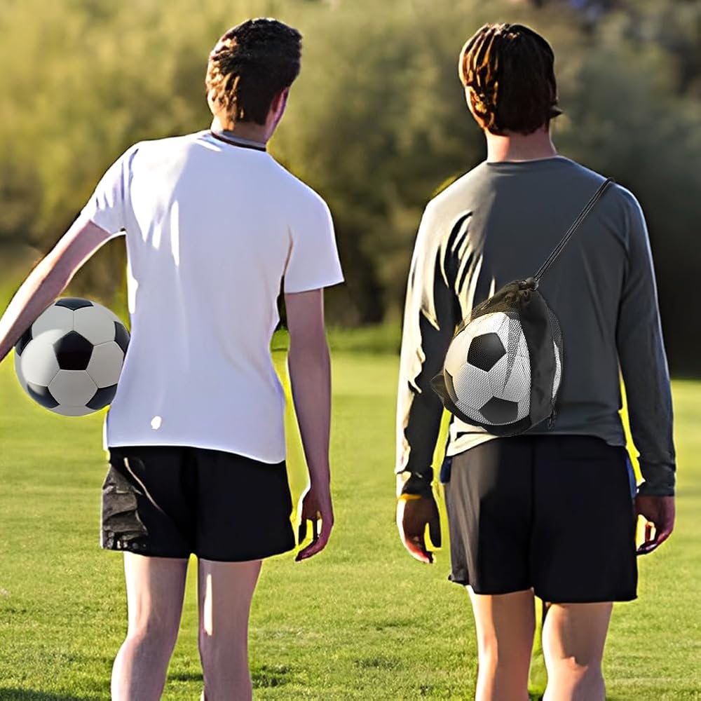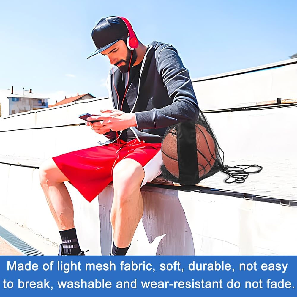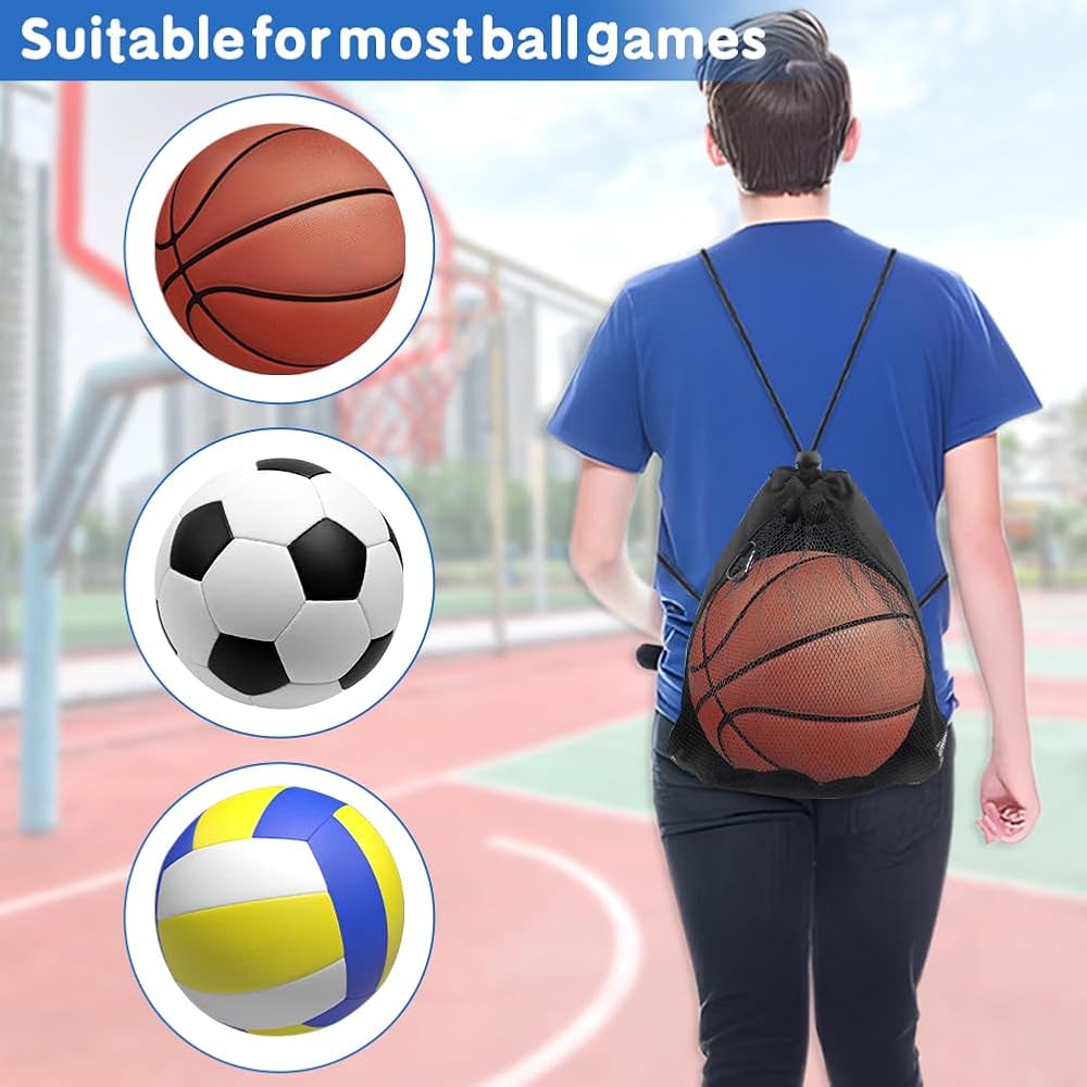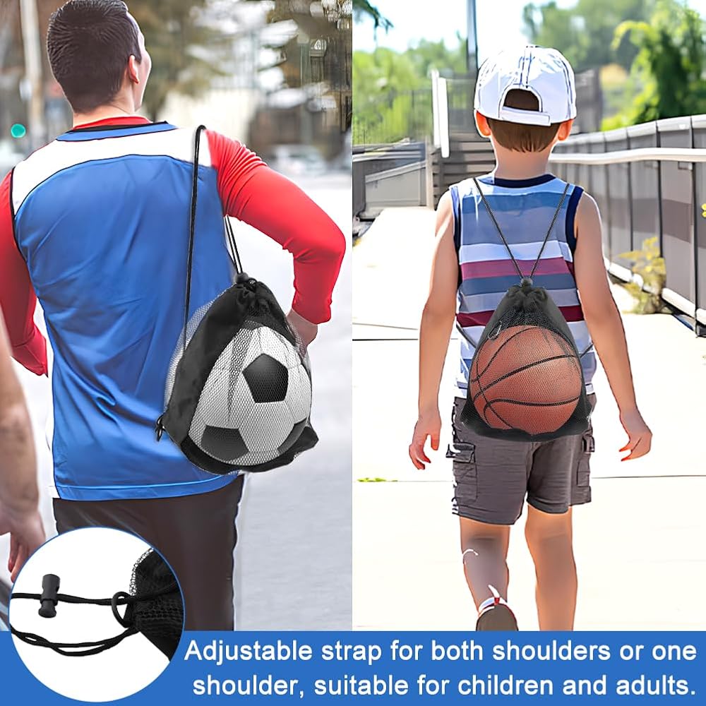 【STURDY MATERIAL】Ball bag is made of lightweight mesh fabric, which is soft, tough, durable and not easy to break. It's washable, wear-resistant and colorfast, making it suitable for both kids and adults.