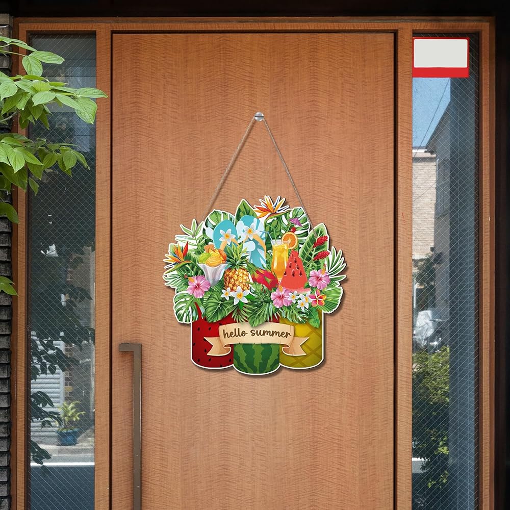 【الحجم المناسب】يبلغ حجم لافتة الباب الأمامي الخشبية حوالي 30*30*0.5 سم/11.81*11.81*0.2 بوصة. الحجم المناسب يمكن أن يجذب انتباه الآخرين بسهولة ويترك انطباعًا عميقًا. تأتي ديكوراتنا المعلقة الصيفية مثقوبة مسبقًا من الأعلى وتأتي بحبل معلق حتى تتمكن من تعليقها بسهولة أينما تريد.