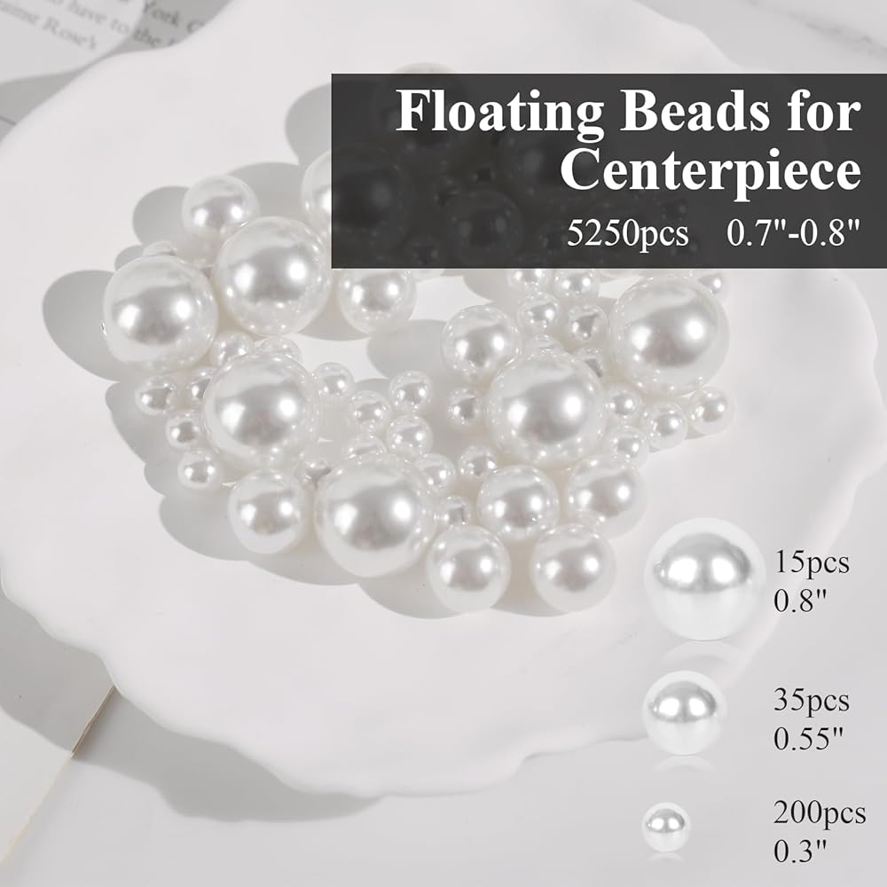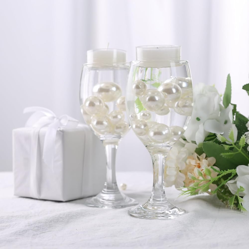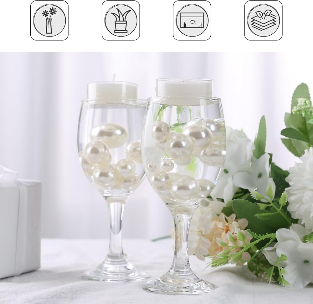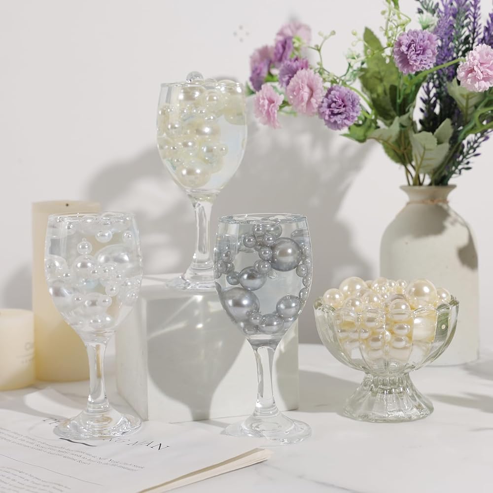 لآلئ جميلة لحشو المزهرية - توفر اللآلئ البيضاء الأنيقة تأثيرًا عائمًا جميلًا عند دمجها مع خرز جل الماء الشفاف، مما يجعلها مثالية للحفلات واحتفالات الذكرى السنوية وقطع الشموع المركزية وديكور المنزل.