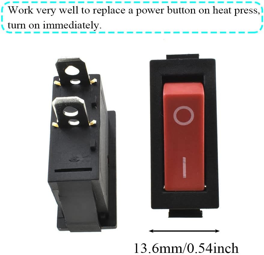 Material:Plastic Color:Red Quantity:4 Pcs Size:31 x 14 x 38mm / 1.2 x 0.6 x 1.5 inch (L*W*H) Easy and quick repair.The internal connection is stable.Used for slide out heat press.Good and sturdy compact rocker switch with light.Sometimes you need to work late in the dark,these switches will light up when the power is on,accompany you silently.It is not easy to deform under pressure.Works perfectly on shredder.