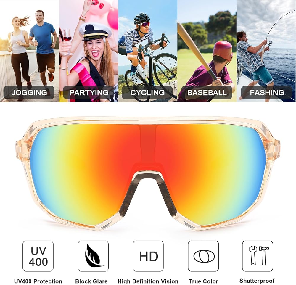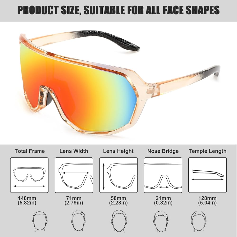Lightweight and Comfortable: The lightweight and flexible frame design, along with comfortable nose pads and temple arms, ensures a snug and comfortable fit during both intense sports activities and leisurely pursuits.
