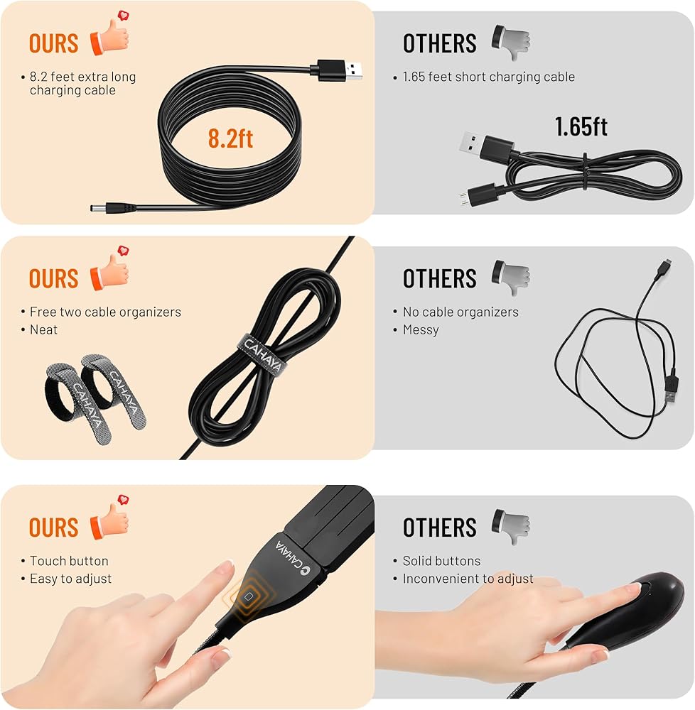 عناصر تحكم هادئة تعمل باللمس: استمتع بتجربة سلسة مع المفتاح الحساس للمس، والذي يوفر ثلاثة مستويات سطوع (10%/50%/100%). مع درجة حرارة لون تتراوح بين 6000-6500 كلفن وتصميم مضاد للتوهج، فإنه يضمن قراءة مريحة ومركزة دون إجهاد عينيك.