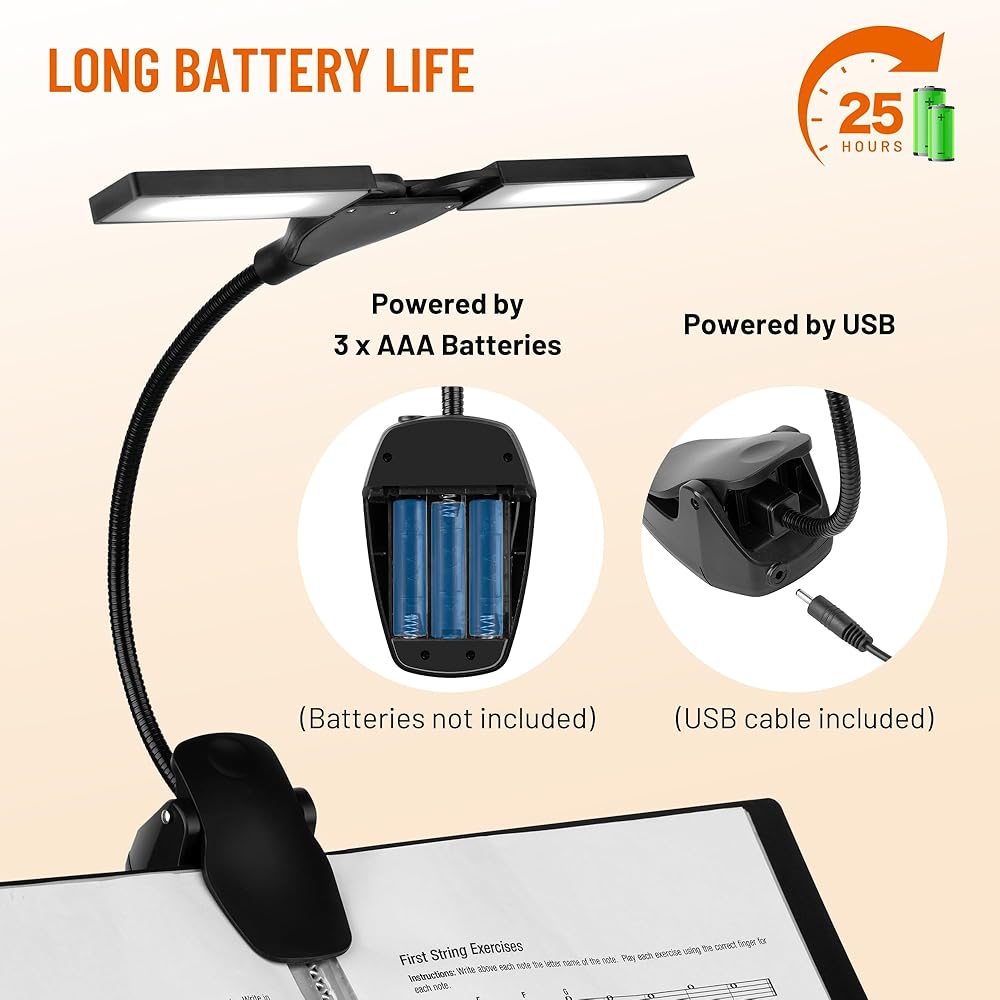 صغير الحجم ومحمول: مصنوع من مواد ABS ومعدنية متينة، تصميمنا القابل للطي يسمح بتعديلات زاوية سهلة وتخزين مريح، مع خيارات الطاقة المزدوجة (البطارية أو USB) (البطارية غير متضمنة)، ويزن فقط 0.44 كجم، إنه خفيف الوزن وقابل للحمل حل الإضاءة لممارسة الموسيقى أثناء التنقل.