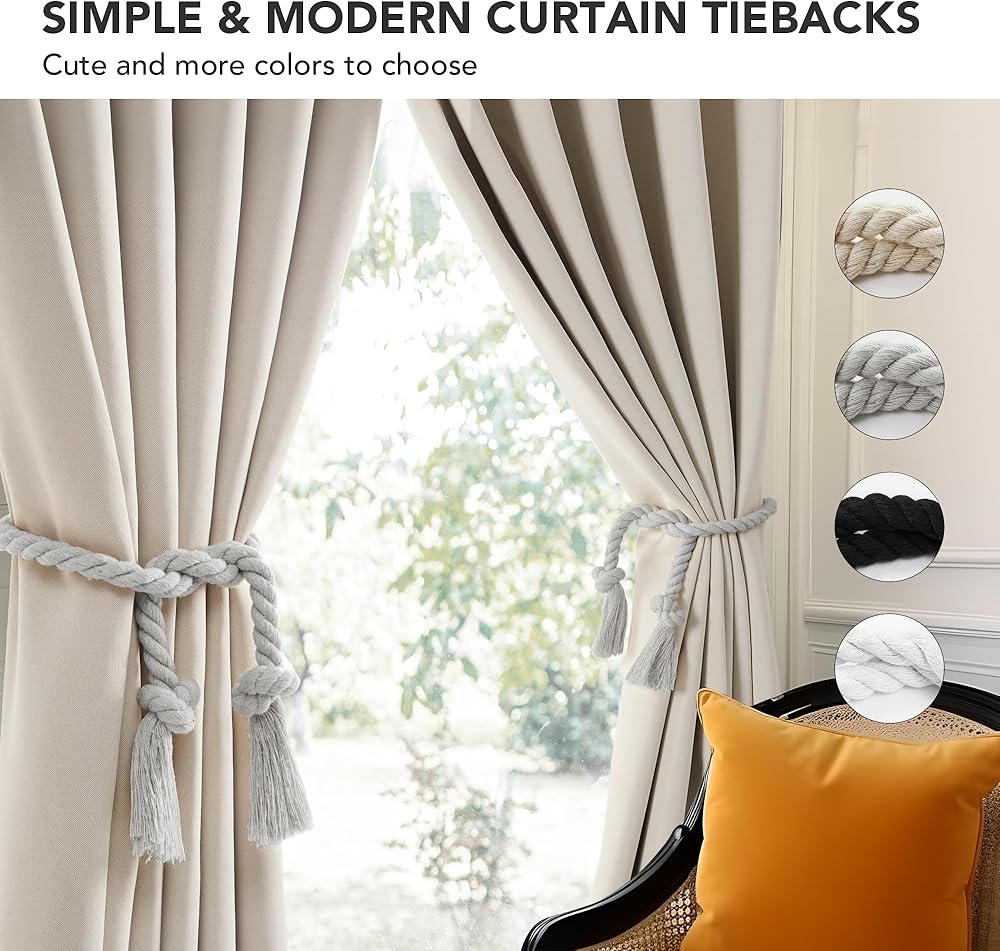 تصميم متعدد الاستخدامات: التصميم البسيط والكلاسيكي للعقد والشرابات لأربطة الستائر الخاصة بنا يكمل أي نمط ديكور، من البوهيمي إلى الأوروبي إلى الريفي، مما يجعله إضافة متعددة الاستخدامات لأي منزل.