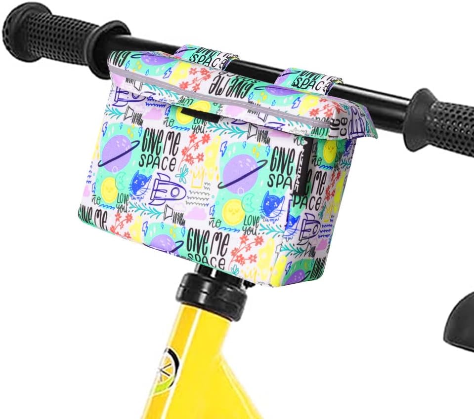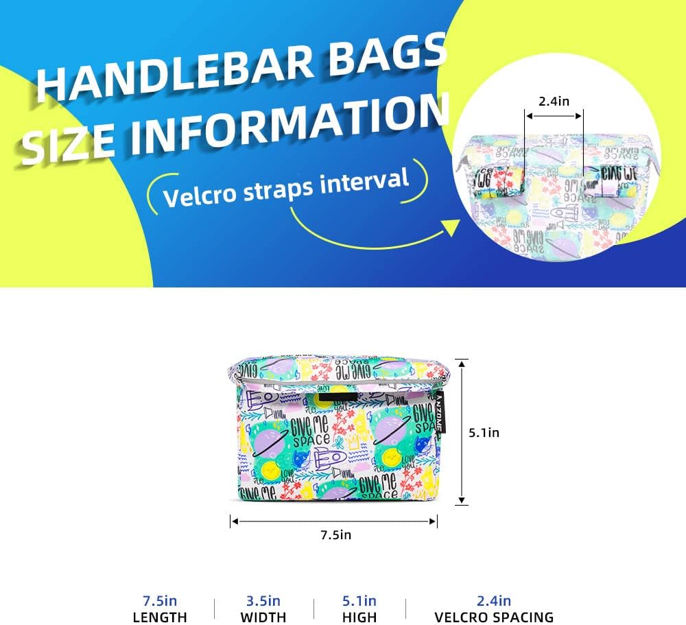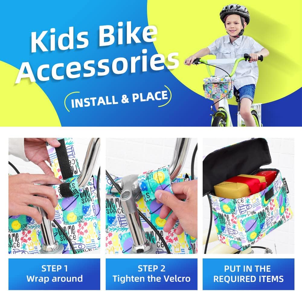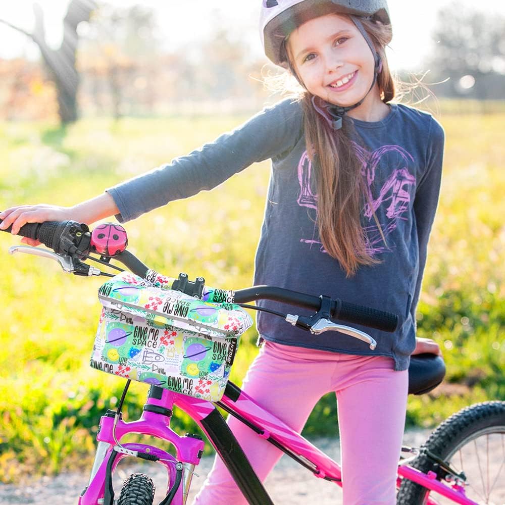 🎁Functional and Durable - The kids bicycle basket size is 7.5" (L) x 3.5" (W) x 5.5" (H), and the capacity is up to 1.93L, which can store belongings from water bottle, tissue, small toys to light outerwear for an outdoor ride. ANZOME girls bike basket is made of quality polyester to ensure it is durable and waterproof. Your girl will be pride of her new handlebar bags!
