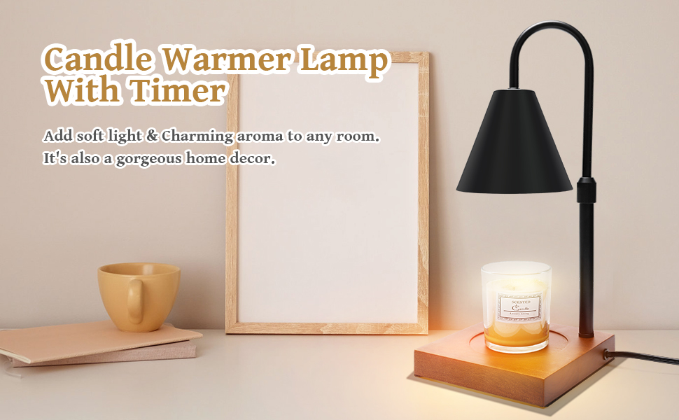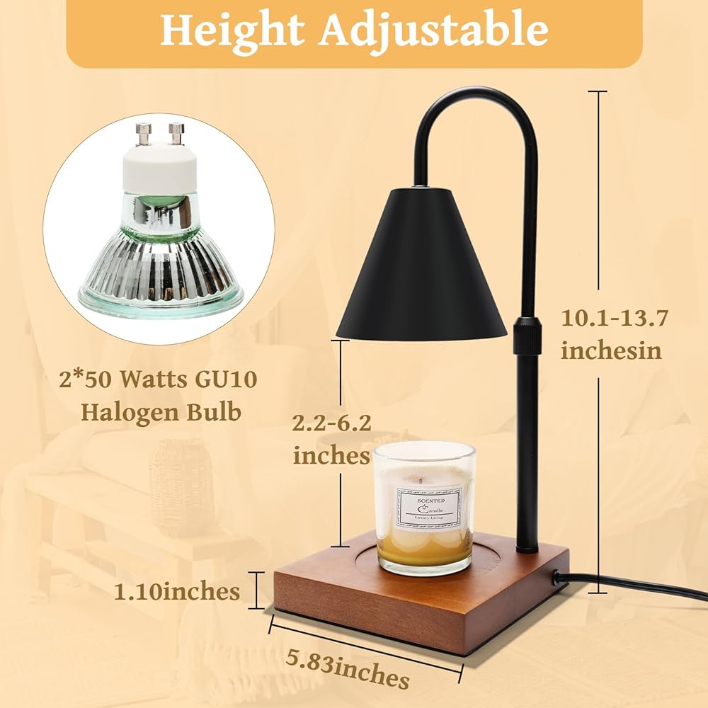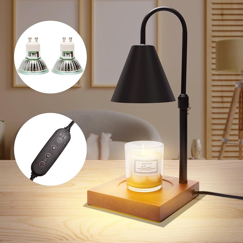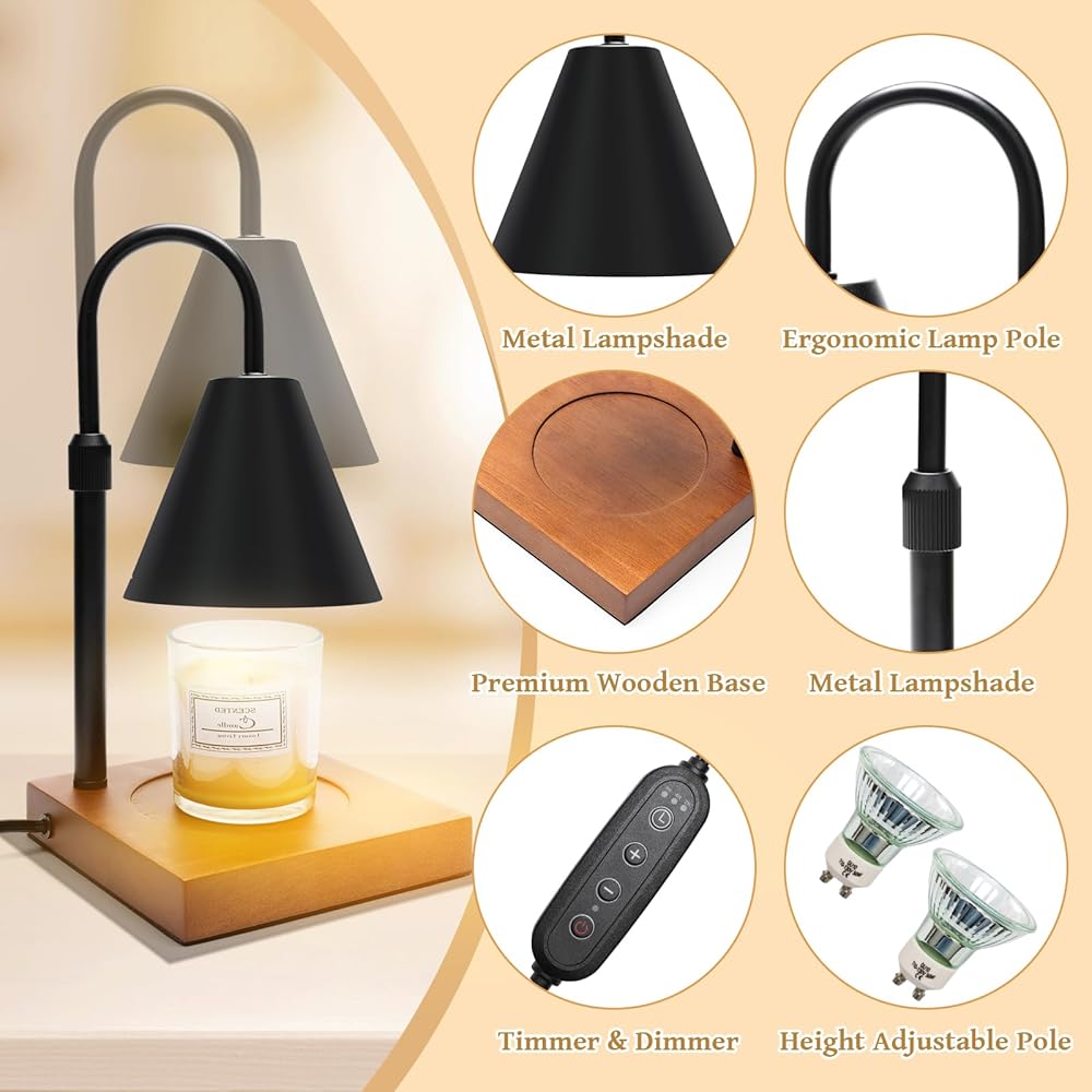 مصباح تسخين الشمعة مع مؤقت، مصباح تسخين الشمع على شكل شموع معدنية كهربائية لشموع البرطمان، مصباح حرارة مؤقت قابل للتعديل وارتفاع قابل للتعديل - بدون لهب شمعة معطرة، مصباح تسخين فانوس مع مصباحين