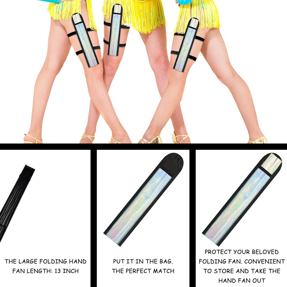Comfortable Wear: Stay cool and comfortable with your hand fan foldable at raves and outdoor events with this convenient fan holster, Our rave fan holster features adjustable straps that can be worn around your waist, thigh or legs for a comfort fit.