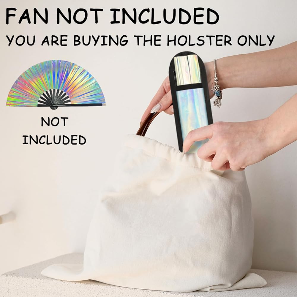 Stylish & Sturdy: Hand fan holder made of sturdy reflective fabric, our rave fan holder securely holds your fan in place while adding a stylish trendy touch to your outfit.