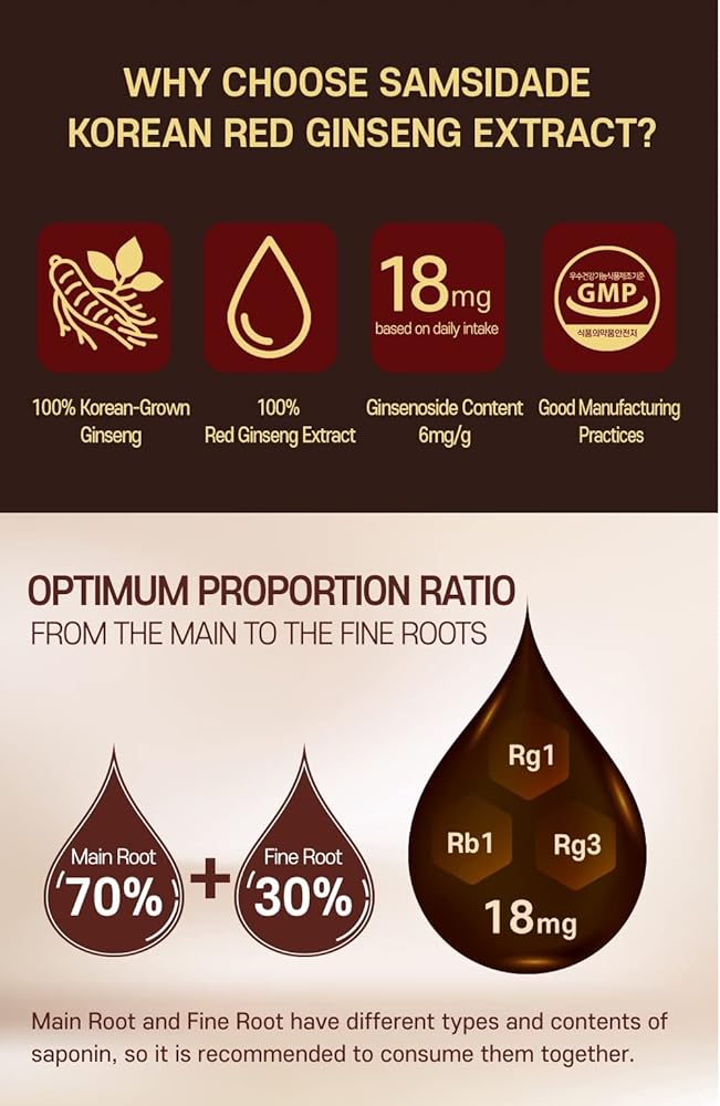 ☑️ WHY CHOOSE SAMSIDADE KOREAN RED GINSENG EXTRACT?: 100% Korean-Grown Ginseng, 100% Red Ginseng Extract, Ginsenoside Content 6mg/g