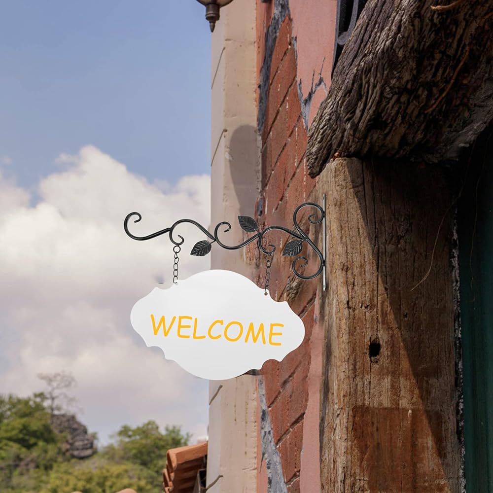 علامات تعليق معدنية من NUOBESTY، دعامات تعليق DIY فارغة مزدوجة الجوانب للتعليق على الحائط، علامة ترحيب للباب الأمامي، لوحة جدارية للمنزل والمكتب والفصول الدراسية وديكورات المزرعة، ودعامات وعاء الزهور، خطاف تعليق من الحديد الأسود