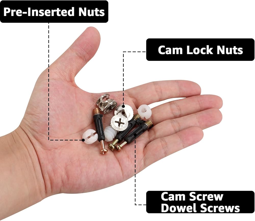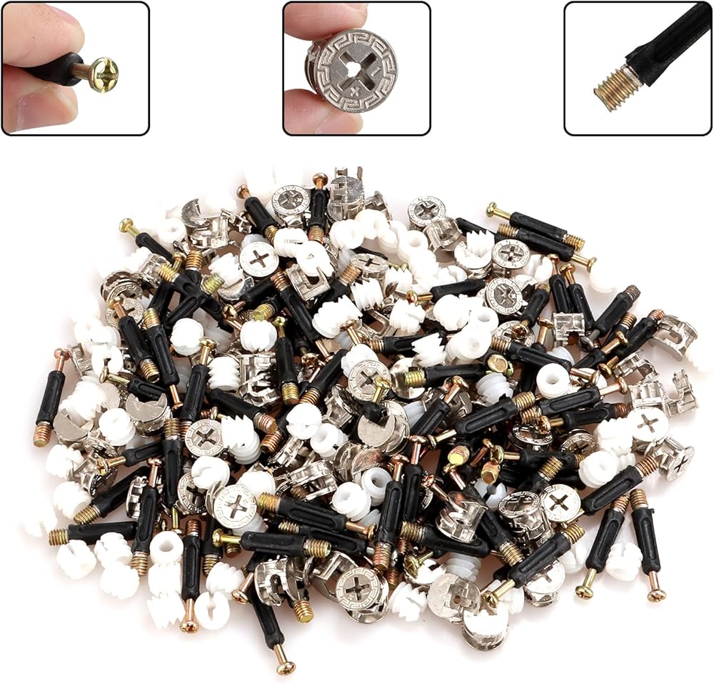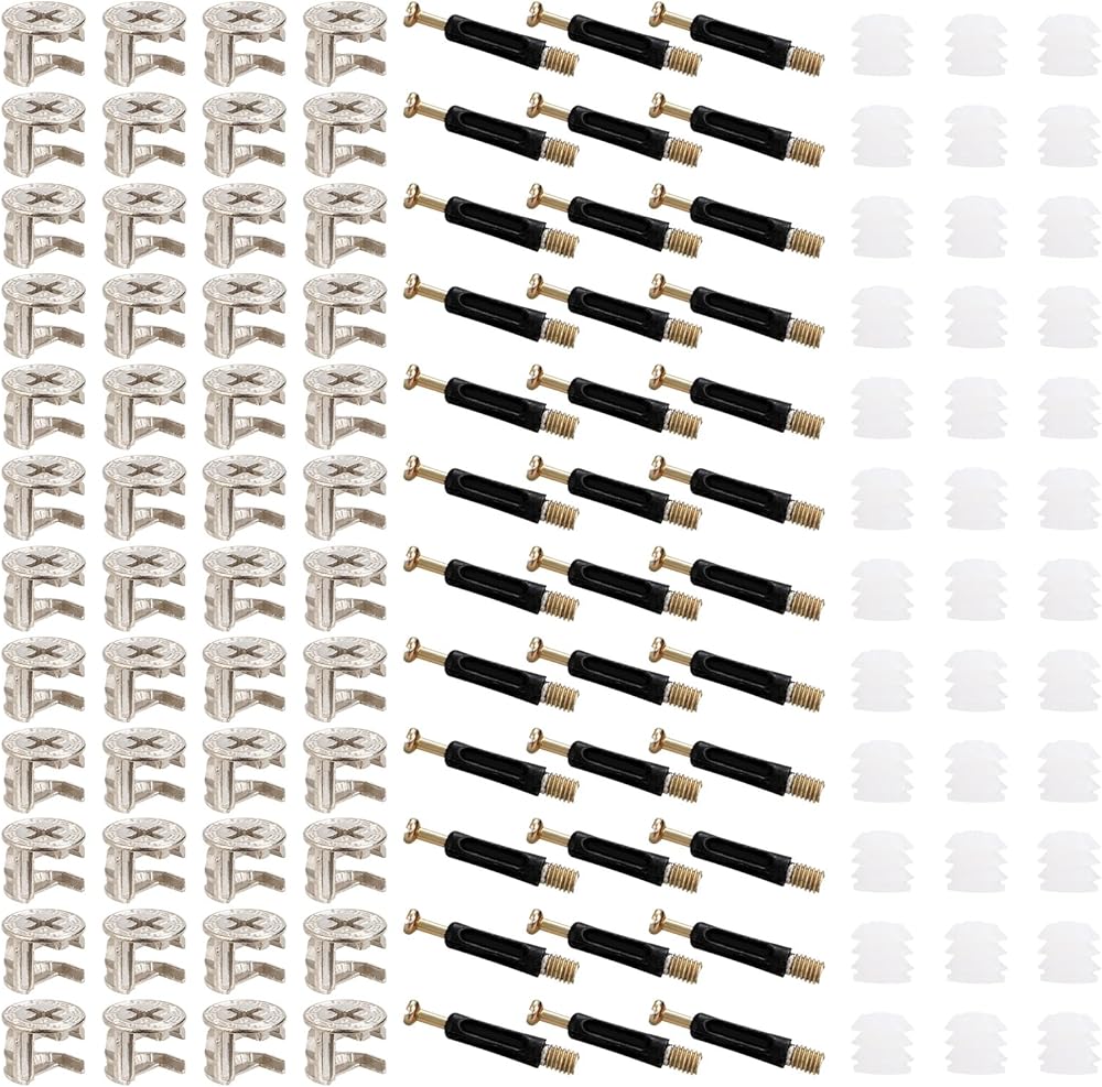 Size: 100pcs 0.6″/14.5mm Cam Fittings + 100pcs 1.57″/40mm Dowels + 100pcs Pre-Inserted Nuts).