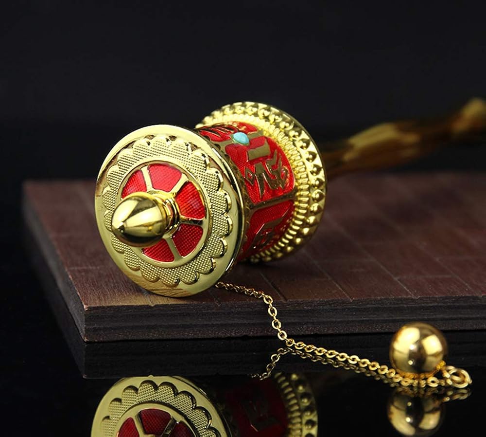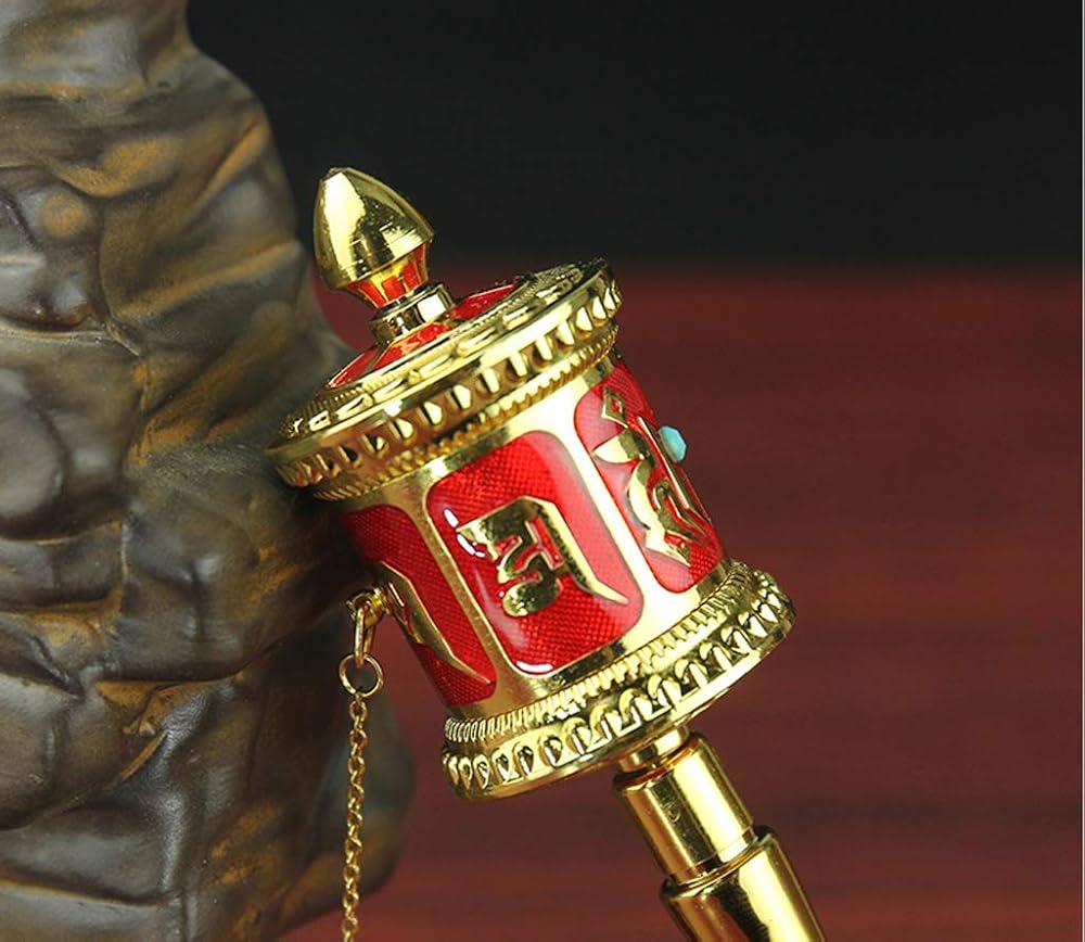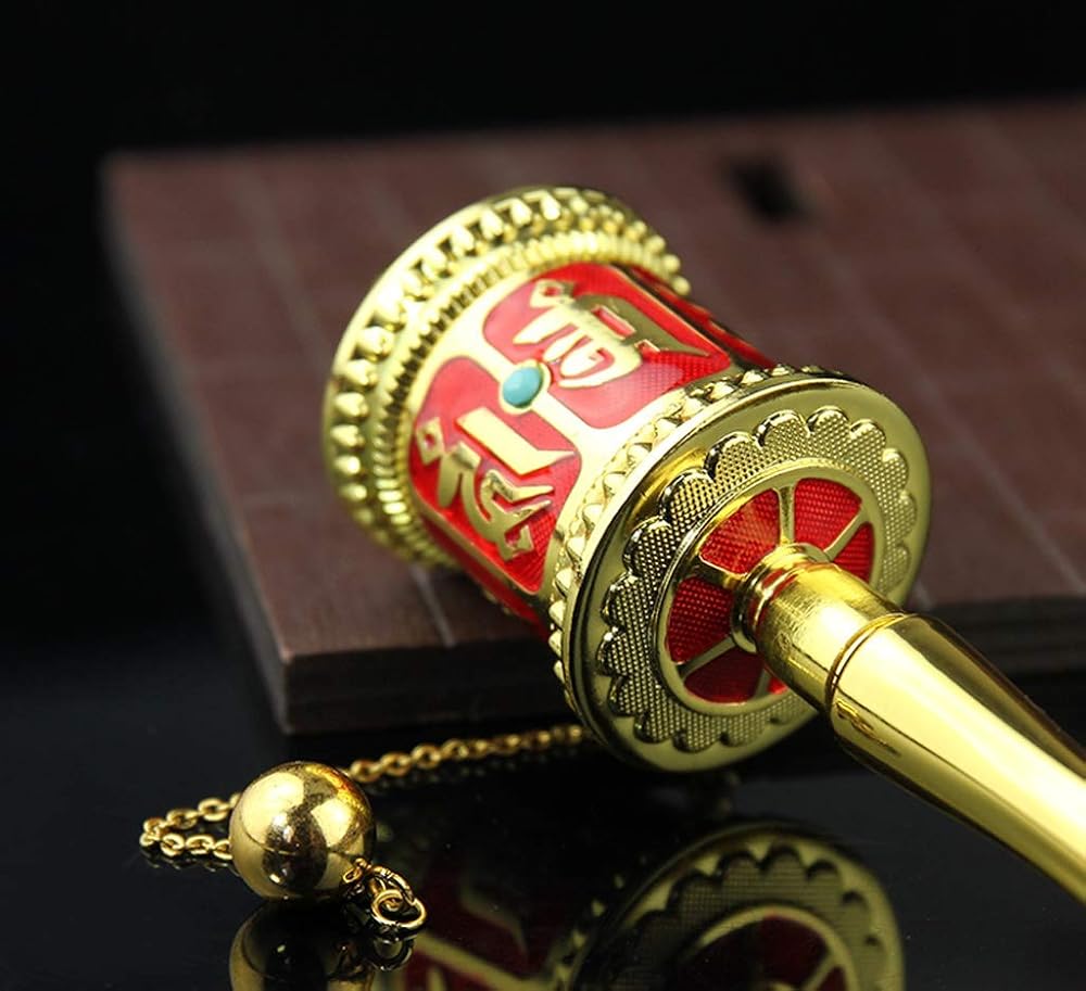 عجلة صلاة محمولة باليد، عجلة دوارة بوذية، عجلة صلاة صغيرة محمولة للبوذية التبتية - عجلة صلاة صغيرة بحجم الجيب للسفر (أحمر)