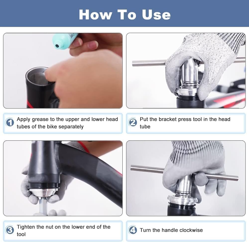 【Easy To Use】-- Time-saving and labor-saving, the headset press tool with quick release design to make installation of tools and elimination more quickly. The bearing uses lubricating ball, not easy to bend, hold it with both hands and slowly apply pressure to install. Easy to use, portable cycling bicycle headset cup extractor tool, it is a good helper for outdoor riding.