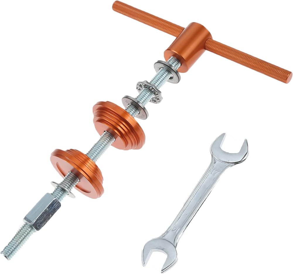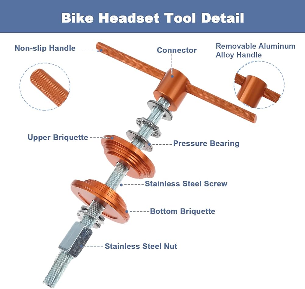 【High-quality Material】-- The headset installation tool body is made of high-strength aluminum alloy material, stainless steel screw, removable handle. CNC knurling design, flat thrust, wide use range, strong versatility.Note: Use grease when installing could be more helpful for your work.