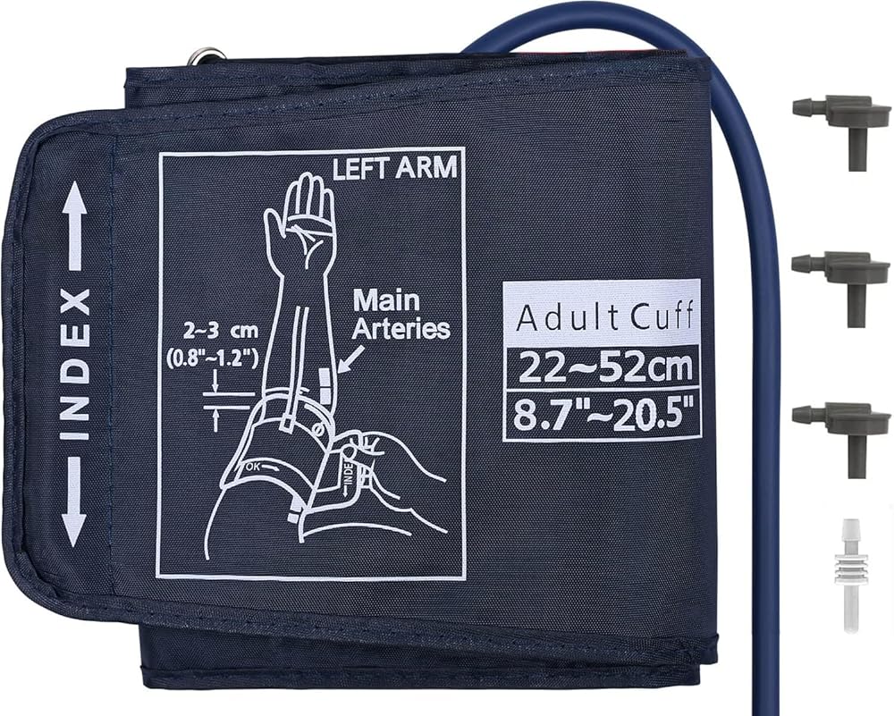 【توافق واسع】 إن سوار ضغط الدم الكبير والمتعدد الاستخدامات الخاص بنا للأذرع الكبيرة يجلب توافقًا واسعًا في المقدمة. مصممة للعمل مع معظم أجهزة قياس ضغط الدم Omron وأي أجهزة قياس ضغط الدم التي تتميز بفتحات توصيل بجهاز bp بقياس 0.18/0.2/0.24/0.28 بوصة، تُعد الكفة الخاصة بنا الحل الأمثل لأولئك الذين لديهم أذرع أكبر. تم أيضًا تصميم سوار BP البديل الخاص بنا للعمل بسلاسة مع الموصل الأصلي الذي يأتي مع جهاز BP الخاص بك.