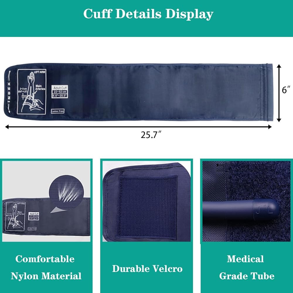 【أساور ضغط دم كبيرة قابلة للتعديل】 أساور ضغط الدم القابلة للتعديل من HYINUS XL، مصممة لتناسب أذرع البالغين التي يتراوح محيطها من 8.6 إلى 20.5 بوصة، ويمكن تصميم هذه الكفة لتناسب احتياجاتك الدقيقة. بفضل المرونة في الشد والارتخاء حسب الرغبة، أصبح قياس ضغط الدم لديك أكثر سهولة وراحة من أي وقت مضى. قل وداعًا للأصفاد غير المريحة والمضغوطة ومرحبًا بـ HYINUS XL!