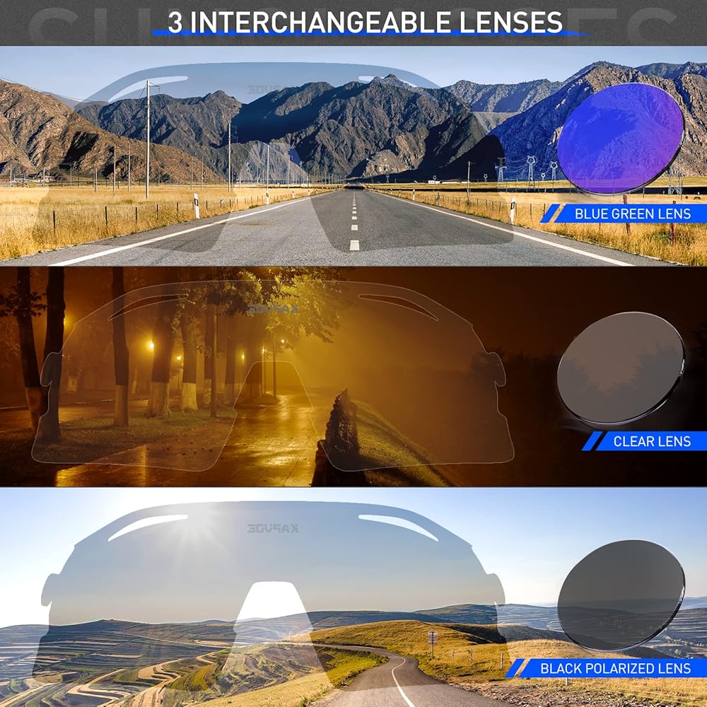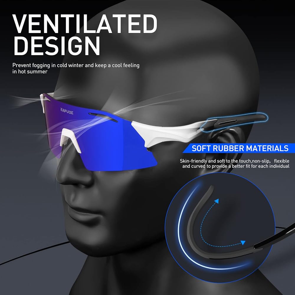【مناسبات متعددة】النظارات الشمسية المستقطبة الرياضية KAPVOE مثالية للاستخدام عن طريق ركوب الدراجات والدراجات النارية والجري والبيسبول وكرة الطائرة والتنس والقيادة وصيد الأسماك والسباق والكرة اللينة ولعب الجولف والمشي لمسافات طويلة وركوب القوارب وغيرها من الرياضات الخارجية.