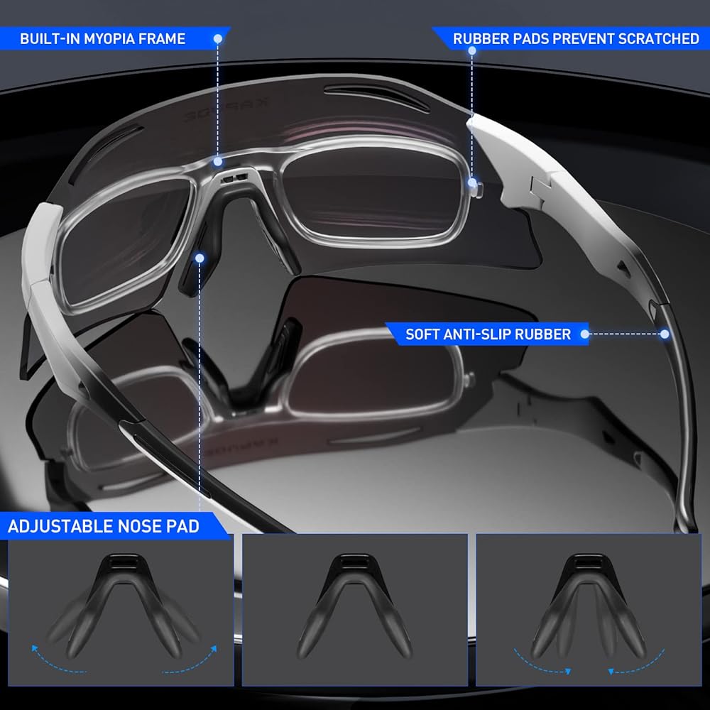 【إطار قصر النظر قابل للفصل】تتوفر هذه النظارات الملتفة حول ركوب الدراجات أيضًا لعشاق الرياضة قصر النظر لتثبيت إطار قصر النظر، كما يسمح تصميم نظام التهوية بتدفق الهواء لمنع النظارات الشمسية من الضباب، مما يسمح لك بالاستمتاع الكامل بأي رياضة.