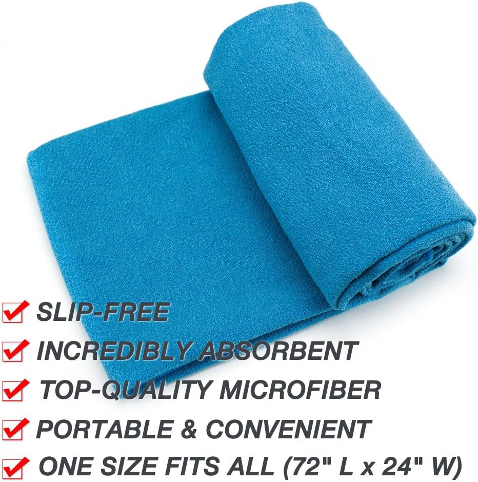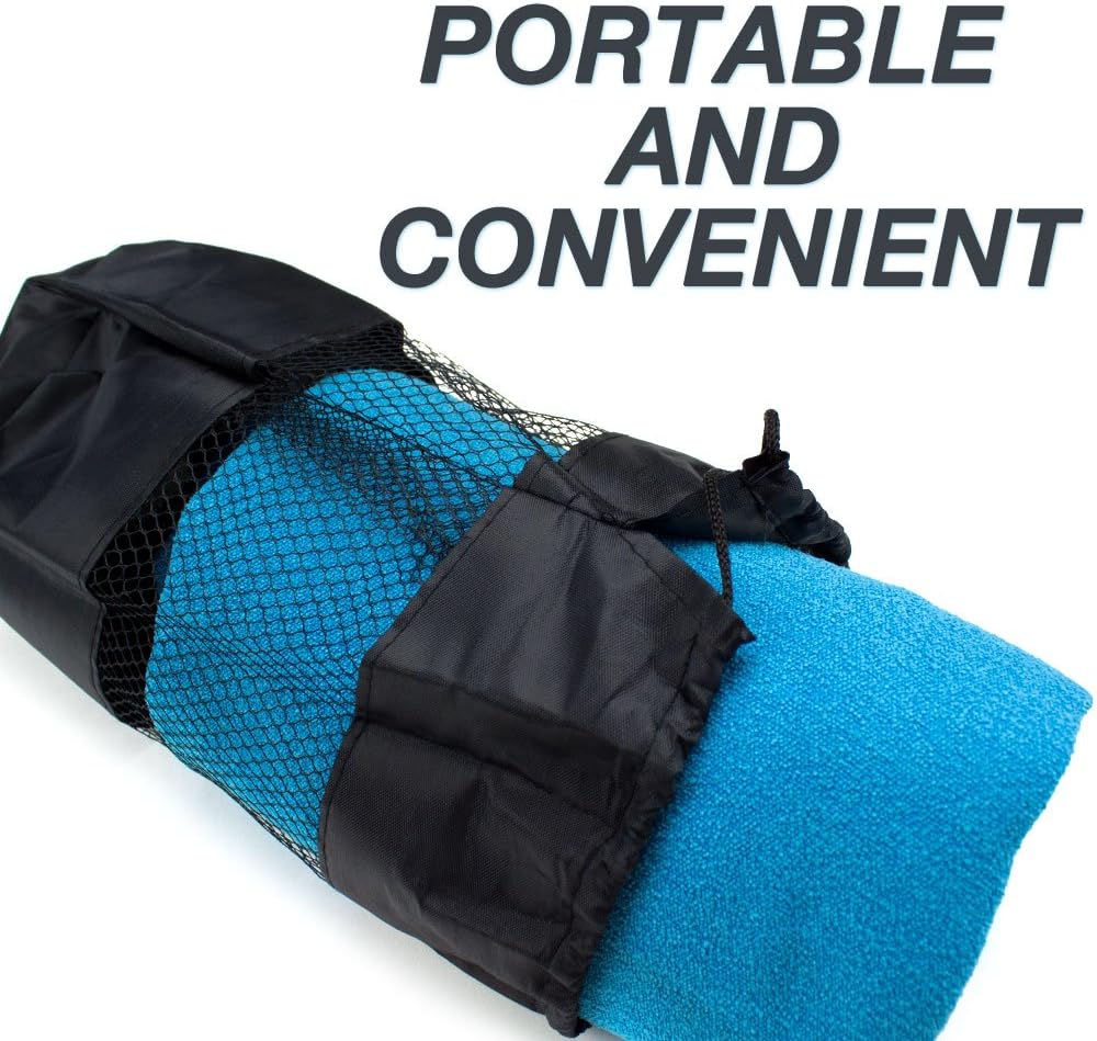Yogis know a slip-free, secure foundation is vital to proper form, focus and fully-realized poses. So don't let sweat become a barrier between you and yoga. Ideal for Bikram (hot) yoga and the natural perspiration generated by a great workout, adding a towel, either directly to the floor or over top of your favorite mat, is a simple step toward better practice. Adding a towel to your mat also extends its lifespan by requiring fewer washes.Our soft, plush towels are made with top-quality microfiber that is not only comfortable but incredibly absorbent, outperforming cotton and polyester alternatives. They wick away moisture, dry quickly, and can simply be thrown in with the regular dark color wash! Best of all, every towel comes with a breathable mesh carry bag. Rolling down to just 8" tall and 5" wide, a yoga towel has never been so portable! No extra bulk to carry, just effortlessly slip your towel in and out of a gym bag, backpack or purse. Measuring 72" long and 24" wide, our towels accommodate standard 68" yoga mats and extra-long 72" mats.