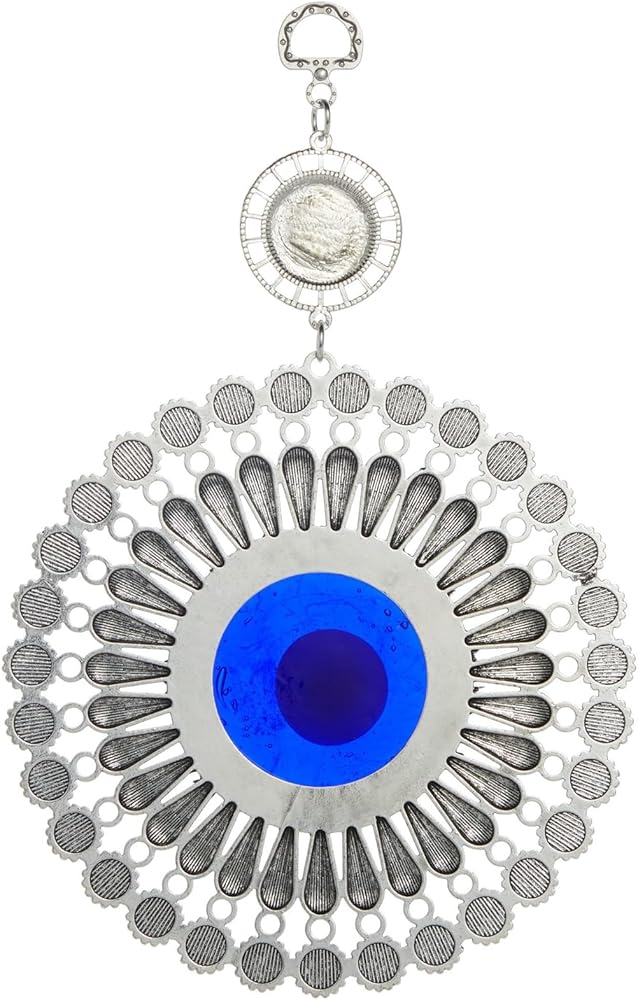 Beautiful Design: Our Turkish evil eye is crafted from beautiful blue glass with a delicate silver border made of zinc; it includes a metal loop at the top that makes it easy to hang