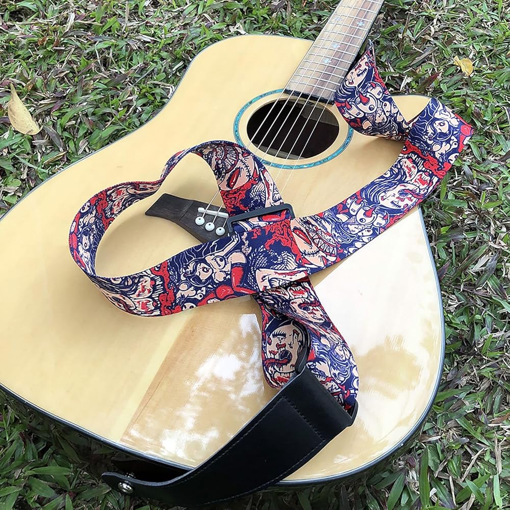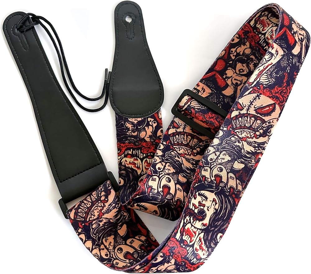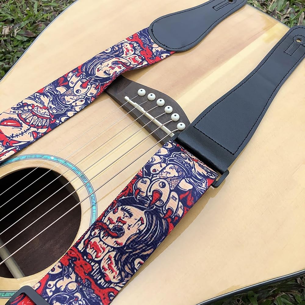 فاسق الفن الغيتار حزام أحمر بارد الملحقات الغيتار حزام الكتف قابل للتعديل مع نهايات جلدية لباس الغيتار الصوتية والكهربائية هدية للرجال