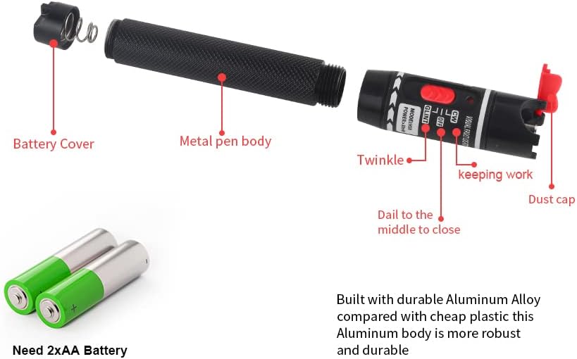 【محدد الأعطال البصرية عالي الكفاءة】سهولة التعرف على نقاط توقف الألياف أو التوصيلات الضعيفة أو الانحناء أو التشقق. ممتاز للعثور على الألياف المناسبة للتوصيل أو العثور على استراحة بسرعة. يتم استخدام الألياف الضوئية vfl الخاصة بنا لتتبع الألياف وتوجيه الألياف وفحص الاستمرارية بكفاءة. سيخلق توهجًا ساطعًا حول منطقة الكسر أو حاجز الصدع في الألياف.