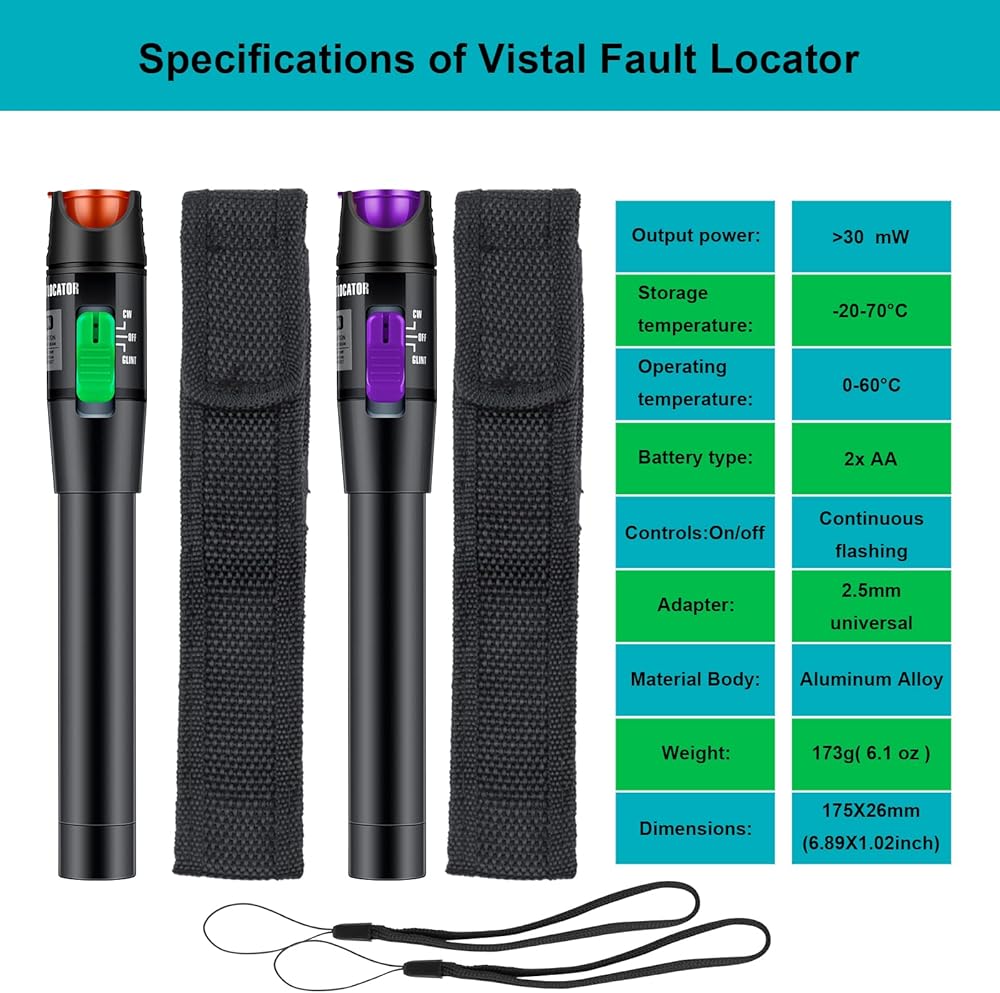 MSDADA قطعتان من محدد الأخطاء البصرية + مجموعة محول SC/LC+FC/LC، محول أحادي الوضع 9/125um، مقياس اختبار كابل الألياف الضوئية لصيانة هندسة الاتصالات (أخضر + أرجواني)