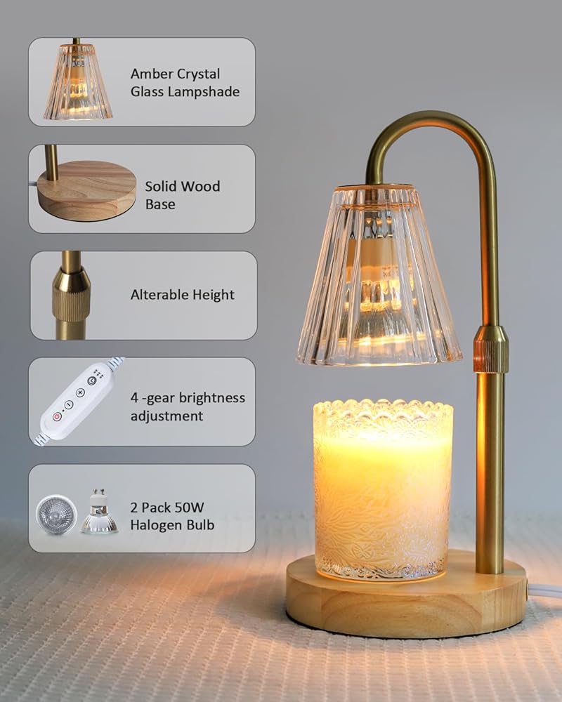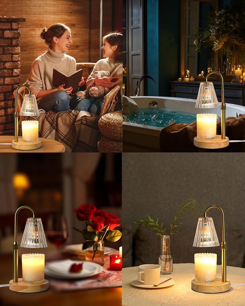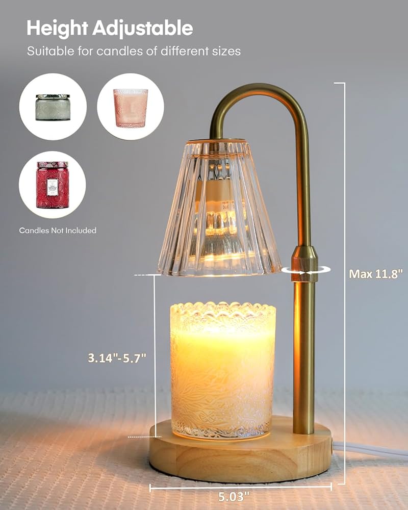 مصباح شمعة أكثر دفئًا مع ارتفاع قابل للتعديل، مصباح شمعة زجاجي لتدفئة شموع الجرة، مصباح شمعة لشموع البرطمان، سخان شمعة كهربائي لديكور غرفة النوم المنزلية مع مصباحين