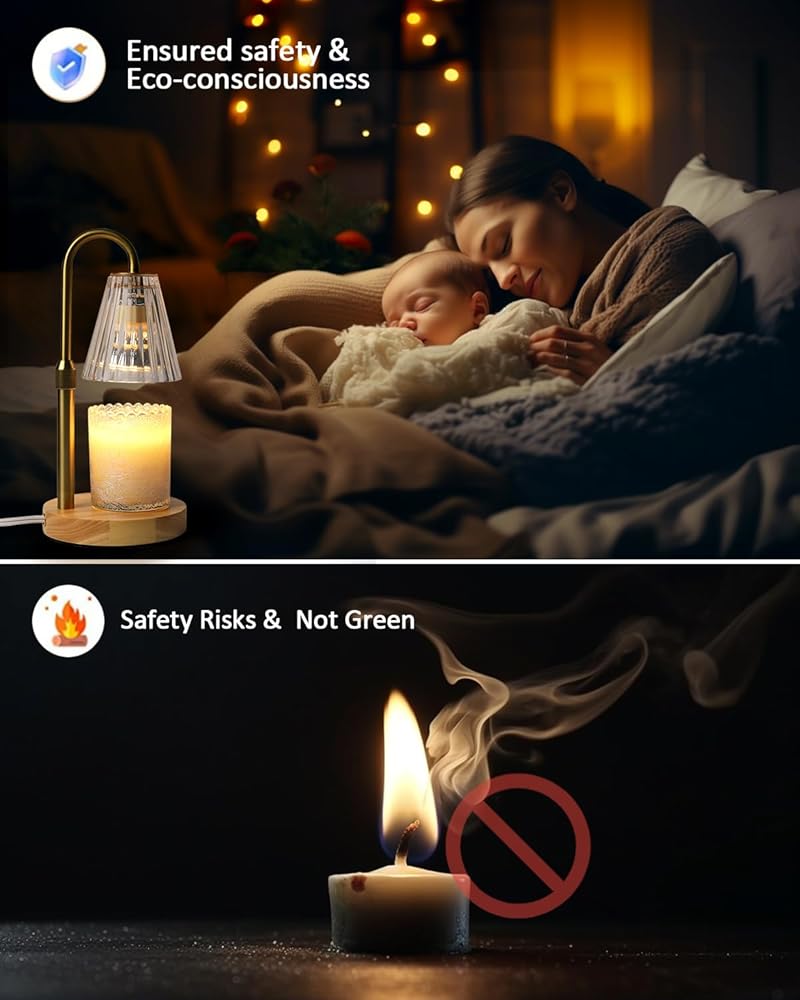 أداء صديق للبيئة: يعمل مصباح تسخين الشموع الموفر للطاقة على إذابة الشموع بلطف، مما يضمن السلامة من مخاطر الحرائق والتلوث. عديمة اللهب، عديمة الدخان، عديمة السخام، خالية من التلوث، وتخفف من مخاطر الحريق. (الشموع غير متضمنة)
