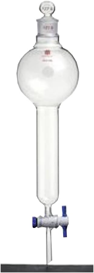 F687500A قمع فصل Synthware، قبضة مؤكدة، سدادة زجاجية، 500 مل، حجم السدادة #27، محبس PTFE 4 مم