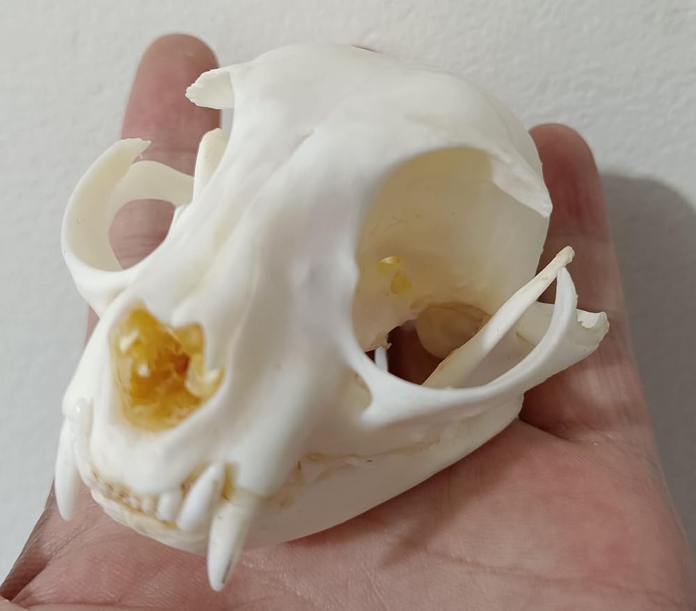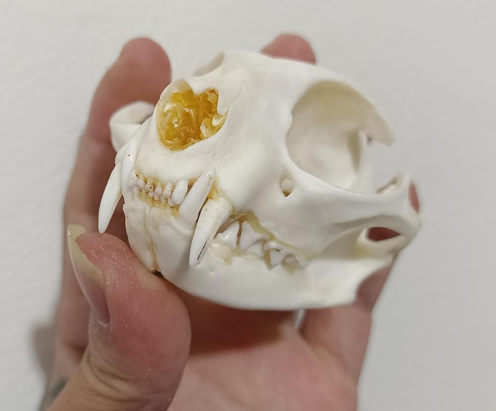 Real cat skull specimen cleaning. Perfect for your Native American or mountain man project. No animals are killed for profit! All the animals died of natural causes and were harvested from the farm.