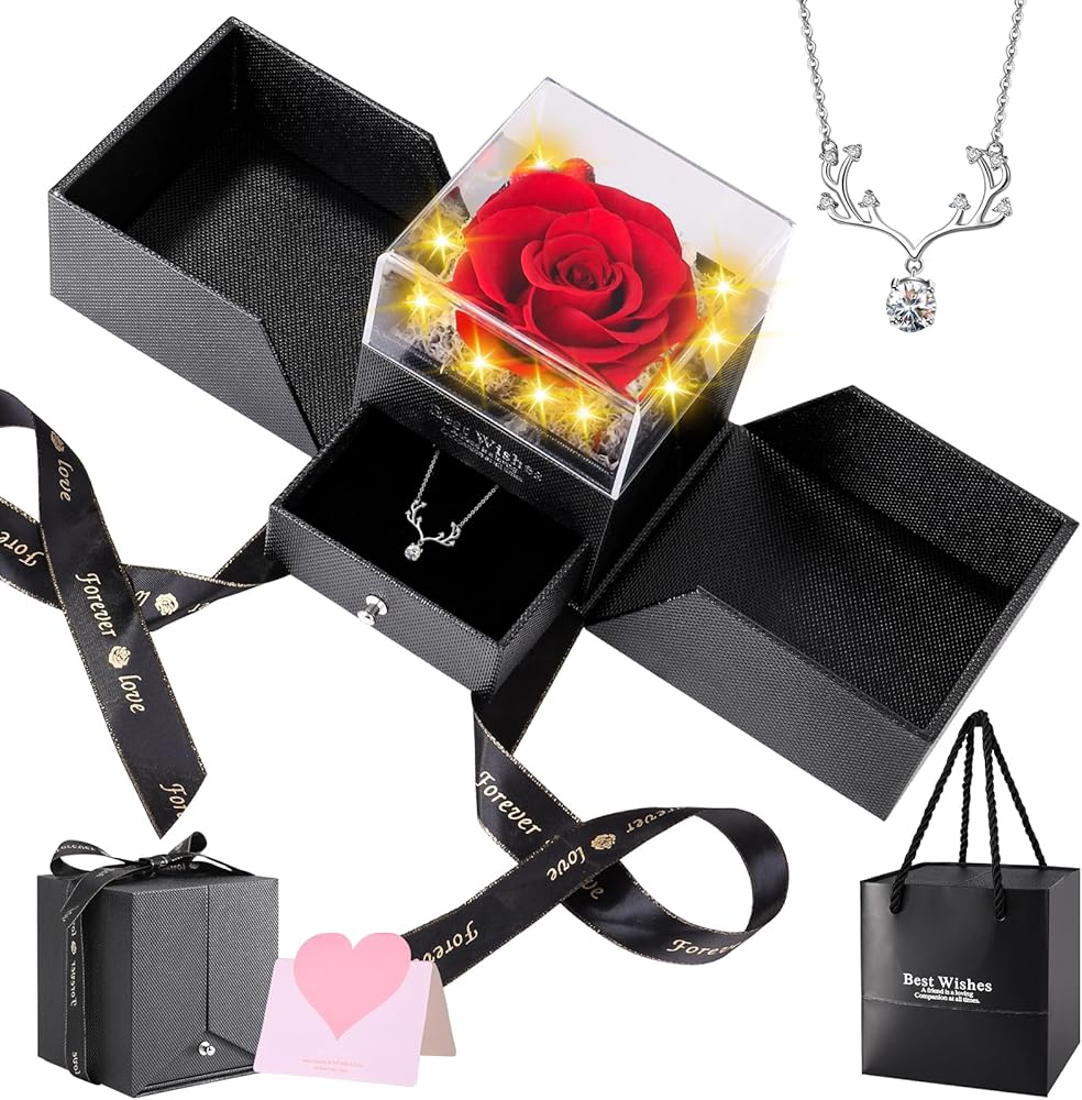 【هدايا رومانسية لها】 عبّر عن حبك من خلال صندوق هدايا الزهرة الخالدة والقلادة. إنه مثالي لمختلف المتلقيات، بما في ذلك الأم والصديقة والزوجة والأخت والجدة.
