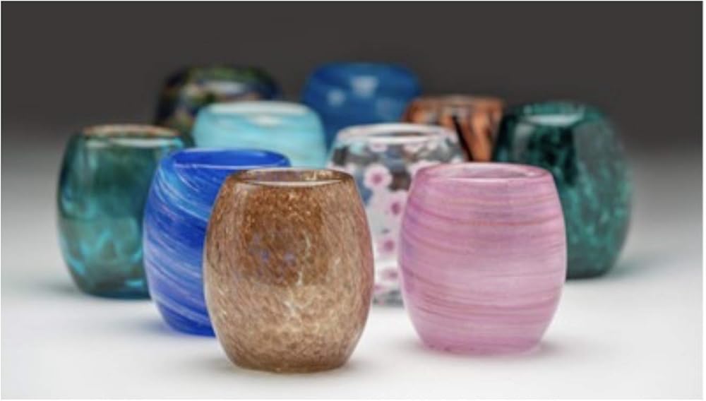 Light up the room with our mouth blown Glass Votive holders! At 4 inches tall, they also make a beautiful vase or pen holder. Our talented glass makers use precision and skill in making these hand blown vessels with 2000 degree molten glass.