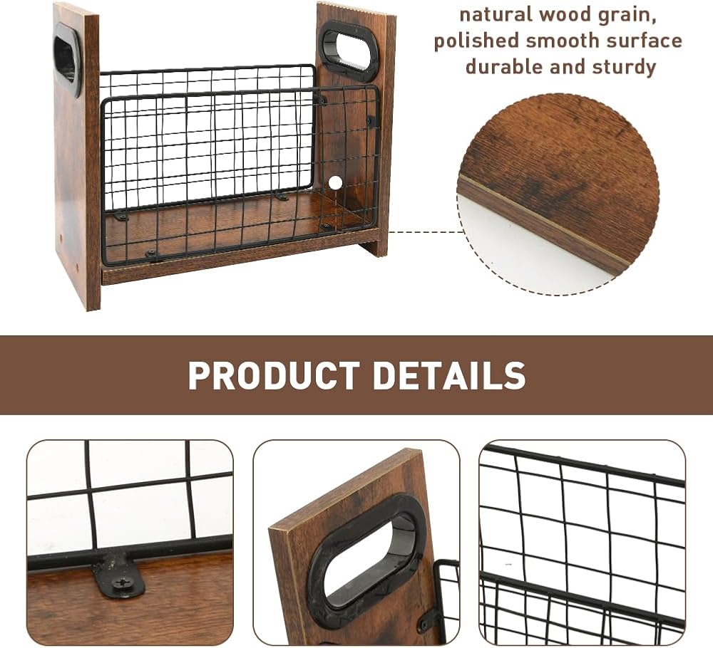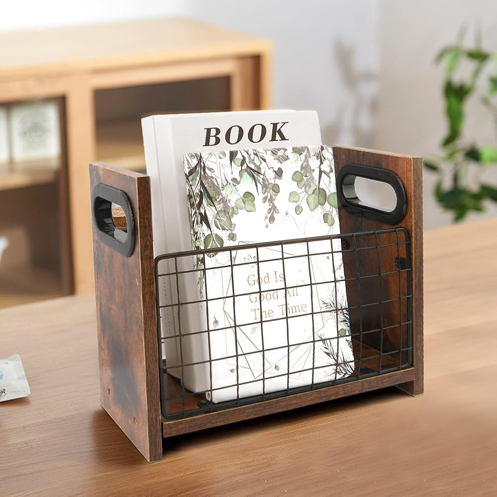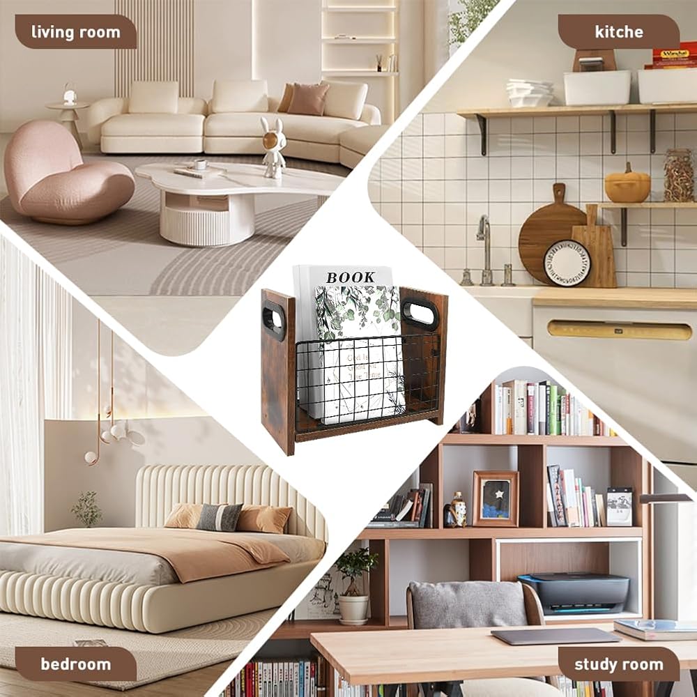 • 【DURABLE MATERIAL】The magazine holder is made of wood and iron wire, natural wood grain, polished smooth surface, durable and sturdy, safe and environmentally friendly, not easy to break, it can be used for a long time.