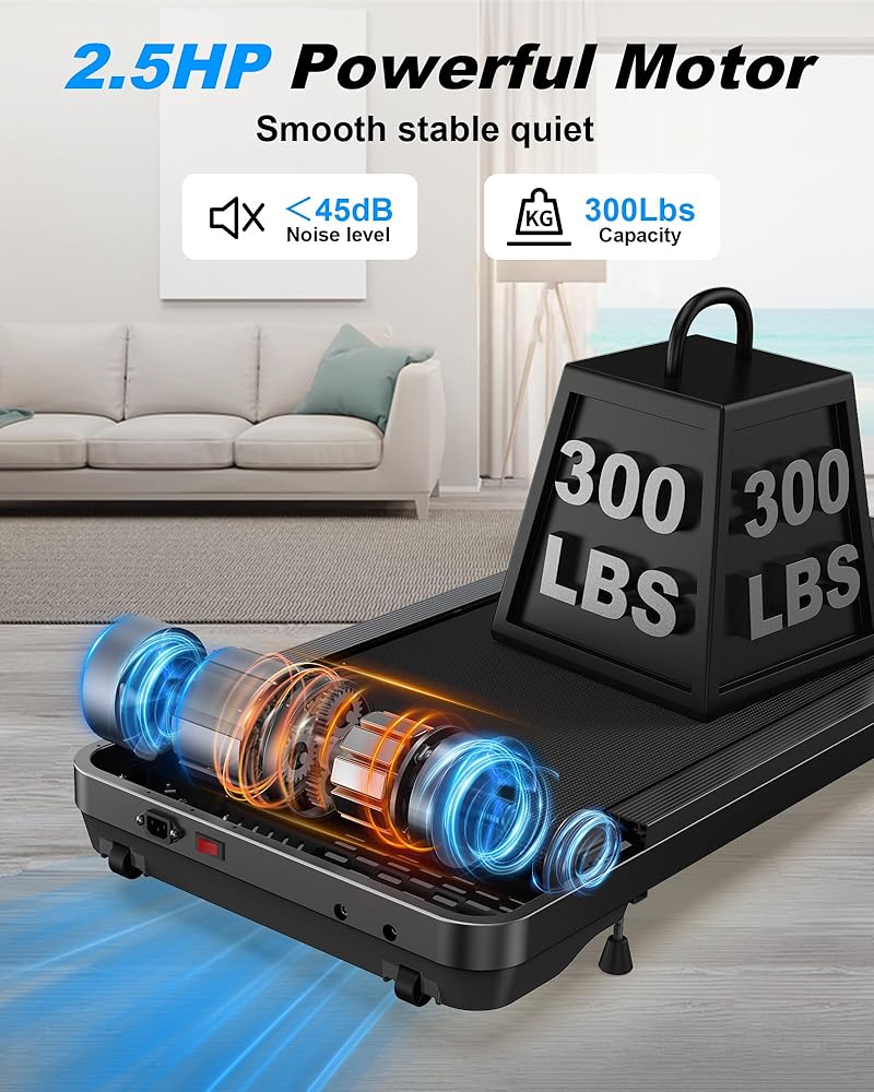 وسادة مشي عالية الجودة بسعة 300 رطل: جهاز المشي هذا مدعوم بمحرك قوي بقوة 2.5 حصان يمكنه حمل ما يصل إلى 300 رطل، مما يجعله أكثر أمانًا للمشي عليه. الحزام الماسي المكون من 5 طبقات مضاد للانزلاق ويمتص الصدمات، ويحمي الكاحلين والركبتين أثناء التمرينات.