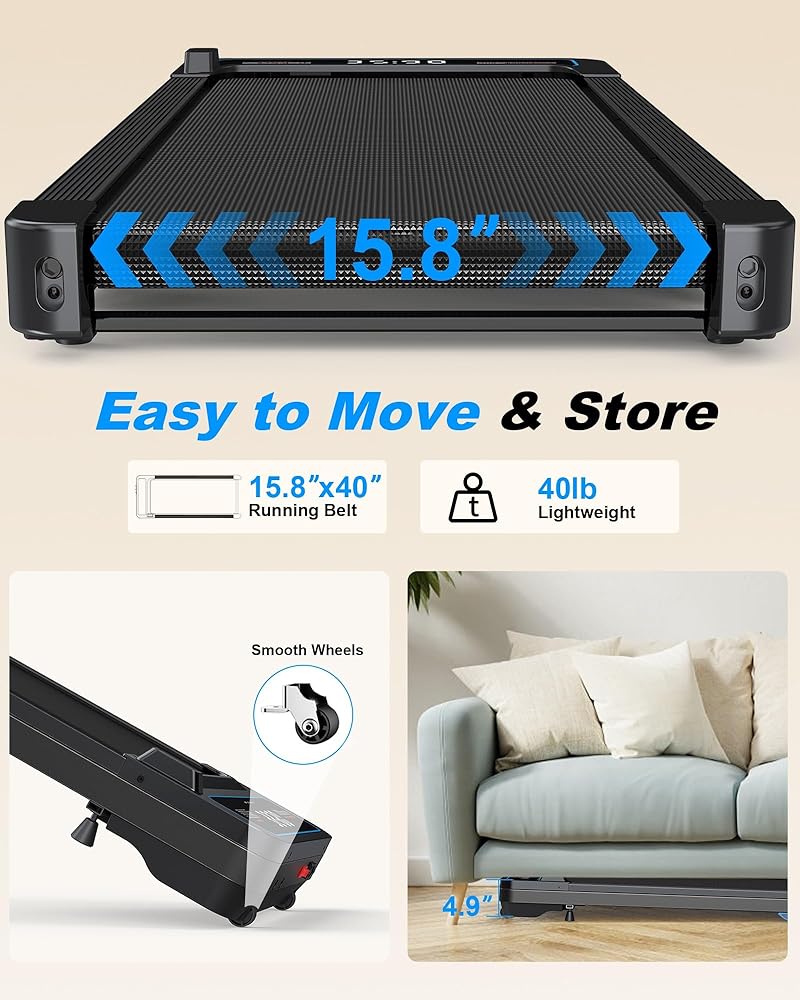 جهاز مشي صغير للمساحات الصغيرة: يزن 40 رطلًا فقط ومجهز بعجلات، وسادة المشي هذه خفيفة الوزن للغاية وسهلة الحركة - إنها حقًا جهاز مشي صغير الحجم ومحمول يمكن وضعها تحت الأريكة أو السرير؛ عظيم لكبار السن والسيدات.