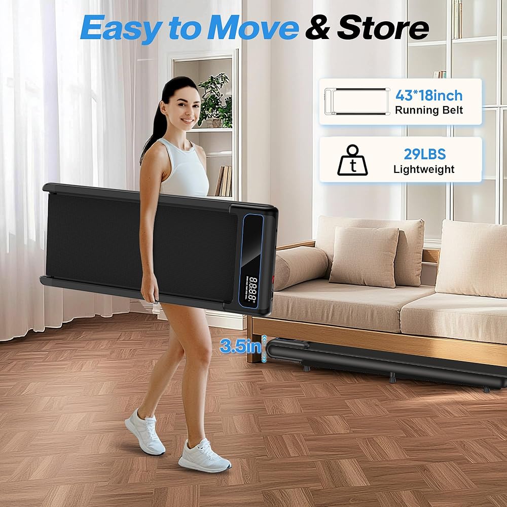 جهاز مشي بسعة 300 رطل - جهاز مشي تحت المكتب مع انحدار بنسبة 5%: تحكم صوتي ذكي متوافق مع WELLFIT KINOMAP Apple Health - جهاز مشي محمول بوزن 40 رطل فقط للمنزل والمكتب الصغير